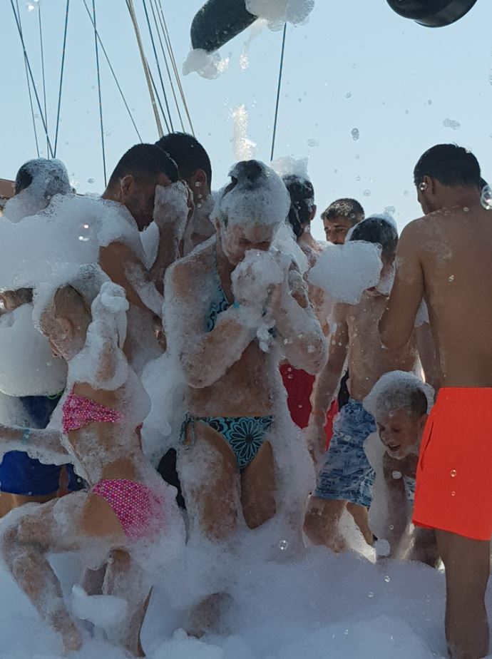 Søndag 24. Juni 2018 En tur på havet med pirater dsjadlkjsaldk fra dækket på vores pirat skib her nogle af de andre mange både fdsfsdfsdfsd Første syn af delfin nu er der mange… … men meget svære at fotografere fdsffsdfsd festen går i gang hele dækket er snart fyldt med sæbe jeg beslutter mig for at gå til agter! fdsfsfdsfd