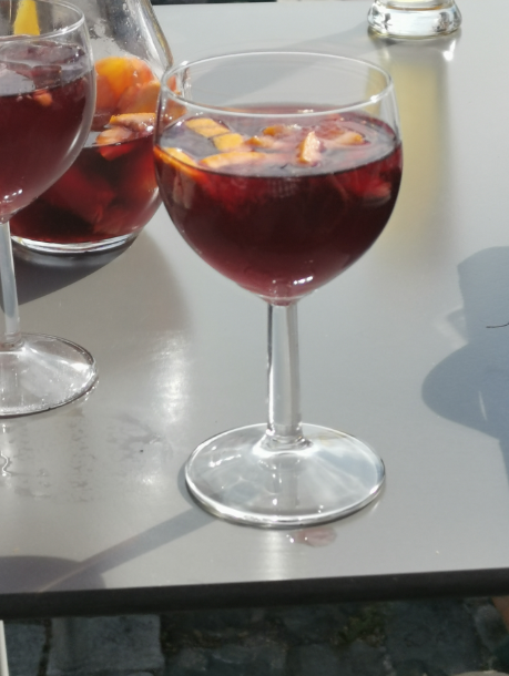 Efter vi har taget turen tilbage til hotellet, beslutter en del af os at tage ud for en lille drink. Jeg deler en kande Sangria med Jette og Maybritt. Det var præcis hvad jeg havde behov for… skøn og forfriskende.
