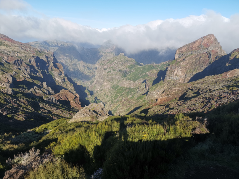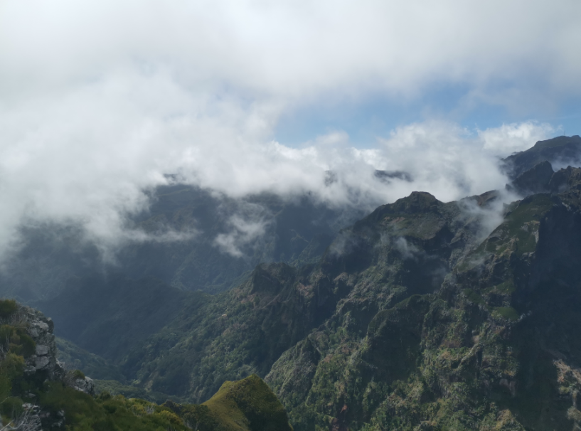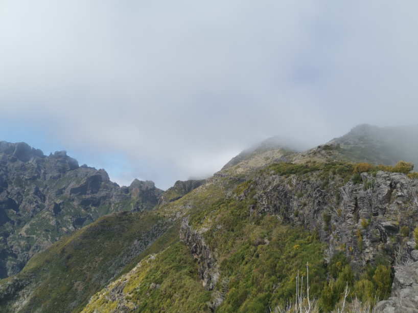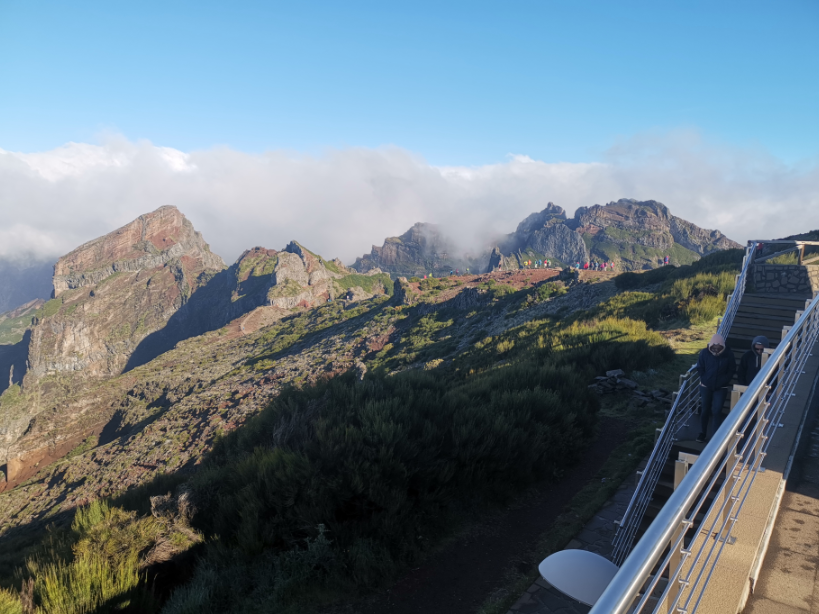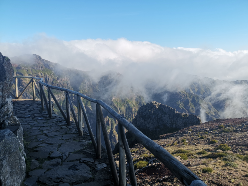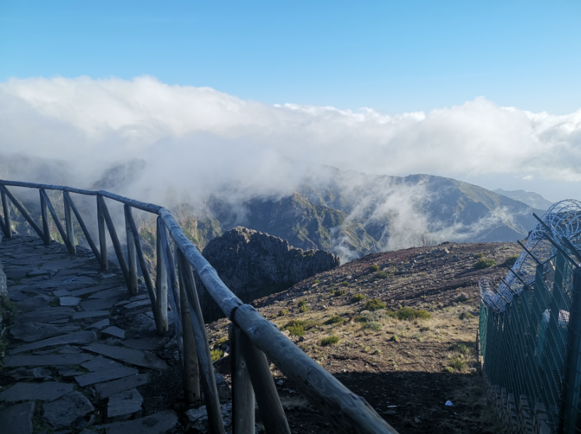 Vi køre 45 minutter med bussen til Pico Do Arieiro i 1818 meters højde, med utrolig skøn usigt. Herfra skal resten af gruppen gå dagens tur. Jeg er kortvarrig lidt ked af at jeg her valgt ikke at gå med de andre på hele turen, men der er hundekoldt det føles som tæt på 0 grader med en kraftig blæst, så det hjælper.