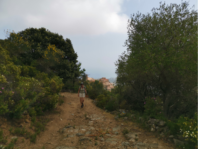 Hurtigt drejer stien fra og vi begynder en opstigning på godt 400 højdemeter, alt imens vi har en vidunderlig udsigt over byen Ile-Rousse, hvor vi har vores hotel.