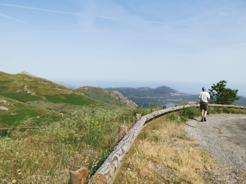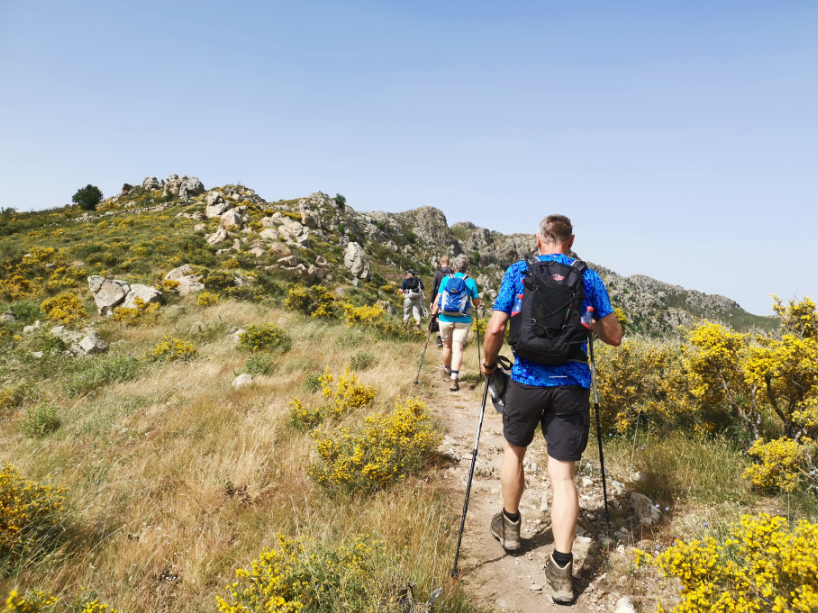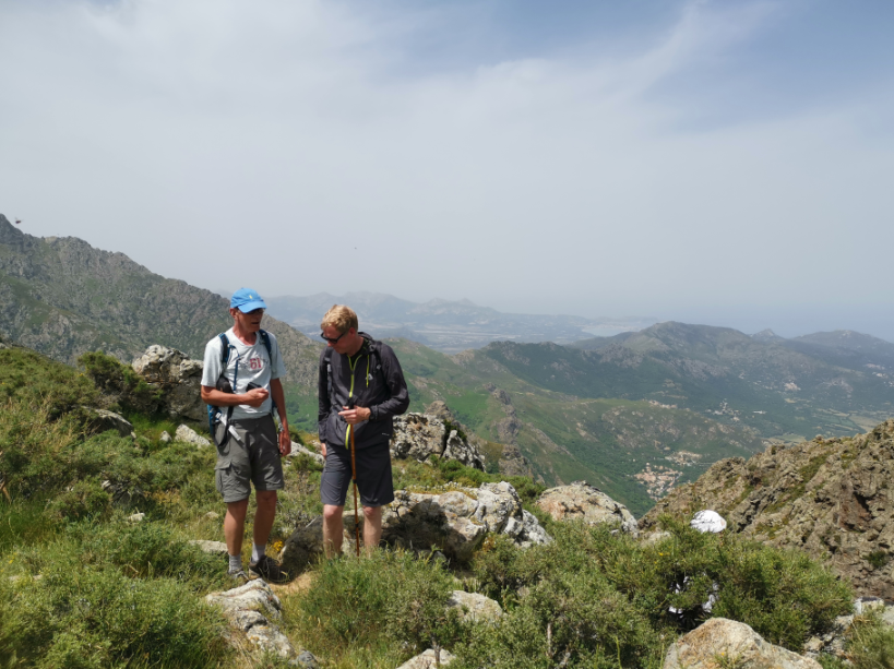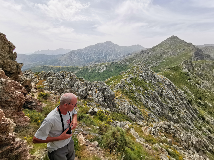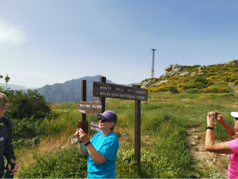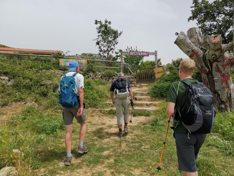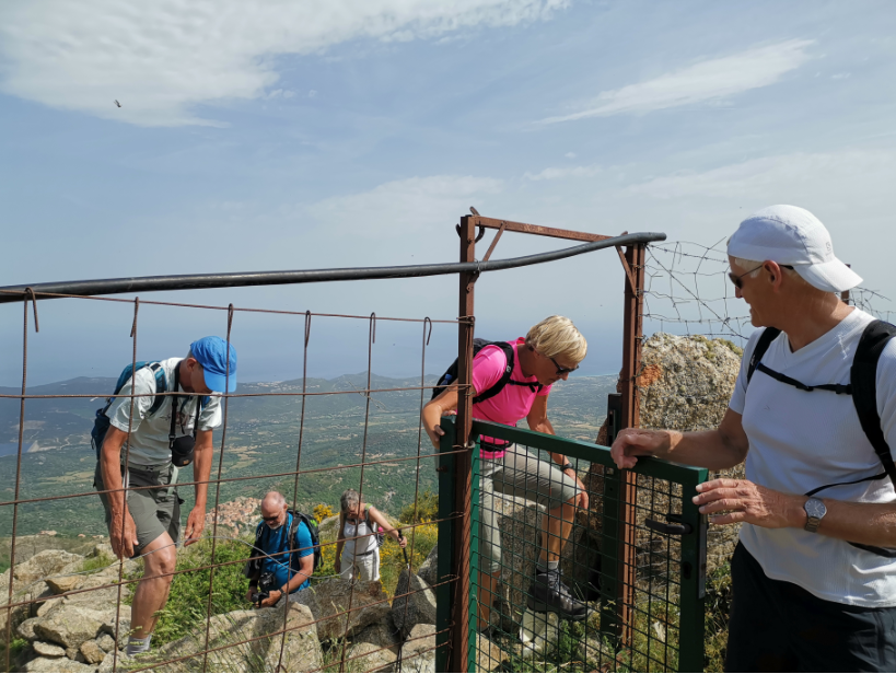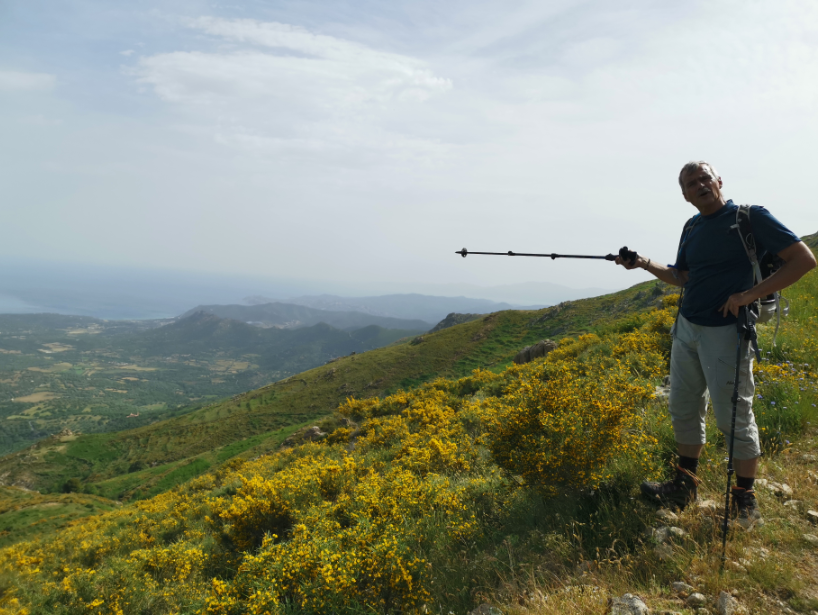 Efter omkring 20 minutter når vi til en lille restaurent og turen er over for i dag…. men det kan jo ikke være rigtigt, som Jens og jeg beslutter at tage nabo toppen inden bussen kommer. Vores guide virker ikke meget imponeret over vores idé men siger at så længe vi sikre at være tilbage inden 30 minutter er det fint. Jeg er temmelig sikker på at det ikke er muligt men vi går alligevel… eller rettere i rast trav. Men var vi for optismistiske… der kommer en utrolig stejl stigning, men tørt grus, massere af løse klippe sten… min puls stiger til 160, jeg har svært ved at få vejret. Jens derimod virker rimmelig upåvirket – en top trænet mand antageligvis midt i 60erne. Slam… og jeg ligger så flad jeg er med ansigtet nede i gruset…. jeg er blot færdig af grin, kæmper mig på føderne og afsted det går. Vi er kommet langt hurtigere frem and ventet. Der er ingen sti helt til toppen så vi må igennem en naki beplatning med stikkende buske, men hvad betyder det, vi skal op…. kort efter når vi toppen… jeg tror vi begge er overrasket over hvor let det var gået. Der er rimmelig god udsigt og vi kan se tilbage til gruppen der små som de er sidder og nyder en øl… der blev grinet lidt af os på turen op, nu er det vores tur 🙂