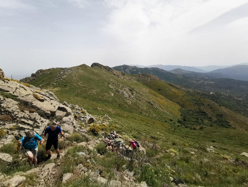 Efter en rimmelig udfordrende passage, hvor et par af gruppen ikke syntes det var sjovt, holder vi formiddags pause, med lidt frugt og masser af vand. Vi sidder med den skønneste udsigt og livet er bare perfekt. For mig er dette hvad jeg kom efter, og hvad jeg ikke rigtig fik på Madeira. Vi er langt fra civilisationen men møder overraskende nok en del andre vandrere, som vist alle viser sig at være syd-tyskere der virkelig også er i deres es – reelt virker udfordringerne for dem som gik de på en lige astfalt vej.