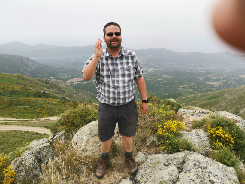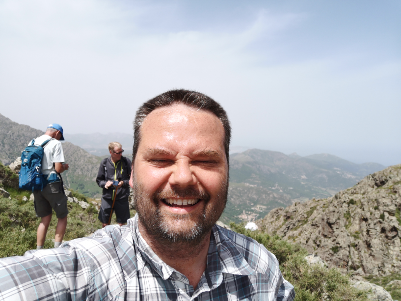 Toppen er egenlig rimmelig stor og flad og vi tager derfor lidt billeder af hinanden og 360 graders video. Selvom det virkelig ikke er til at se på billederne og video at vi stor på toppen og at der er langt til nabo topperne, så er det nu meget vellyket alligevel.