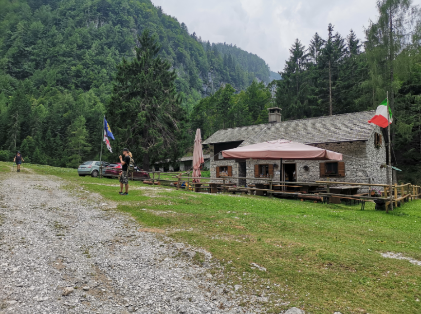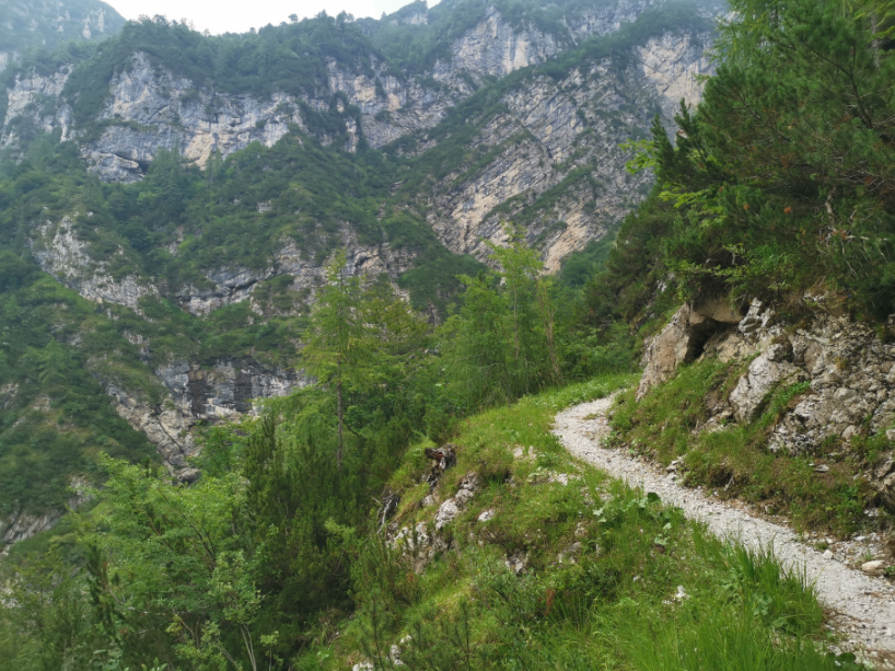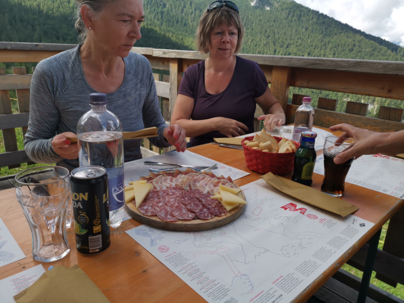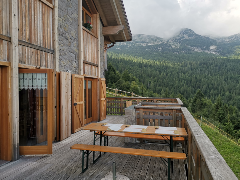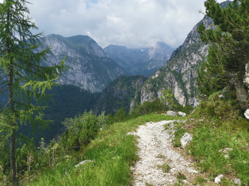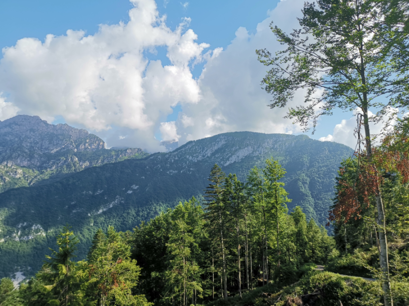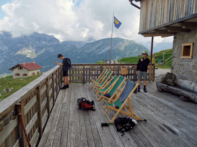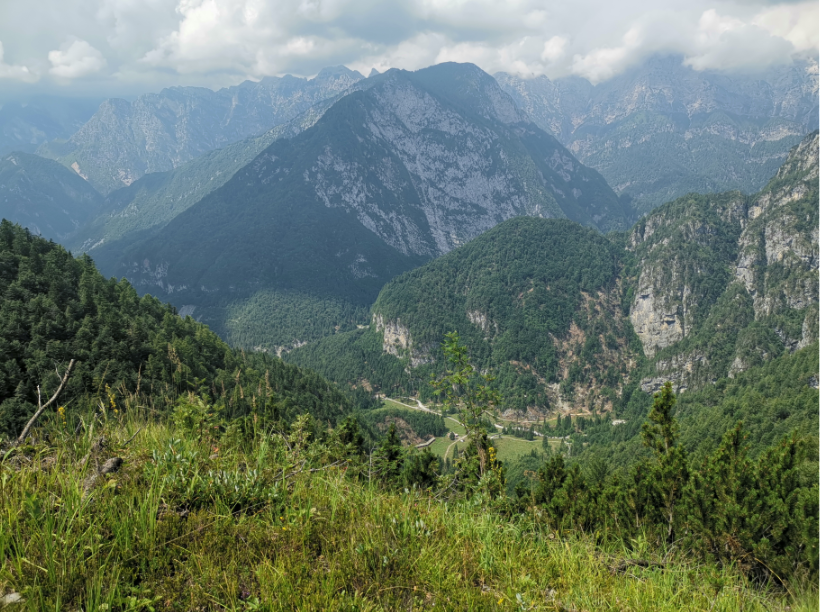 Vi nyder udsigten over bjergene og Claut i bunden af dalen mens vi konstant høre den berøligende lyd af ko-klokken der ringer i nærheden.