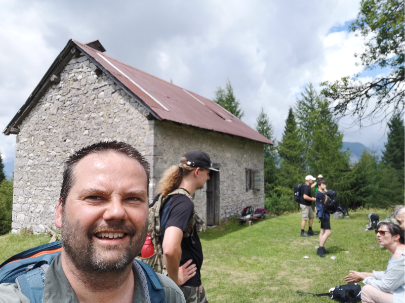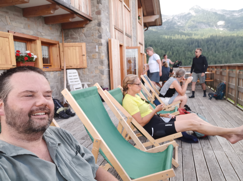 Efter godt 2 timer ankommer vi (noget hurtigere end planlagt) til en skøn hytte hvor vi får dagens frokost og et velfortjent hvil. På turen hertil har jeg de sidste 2 timer ikke haft et øjeblik hvor der ikke minimum hvert 10 sekund er dryppet sved ned fra næsen. Min skjorte er 100% gennemblødt og jeg får derfor skiftet skjorte. Det nye tøj hvor mig straks til at føle med bedre.