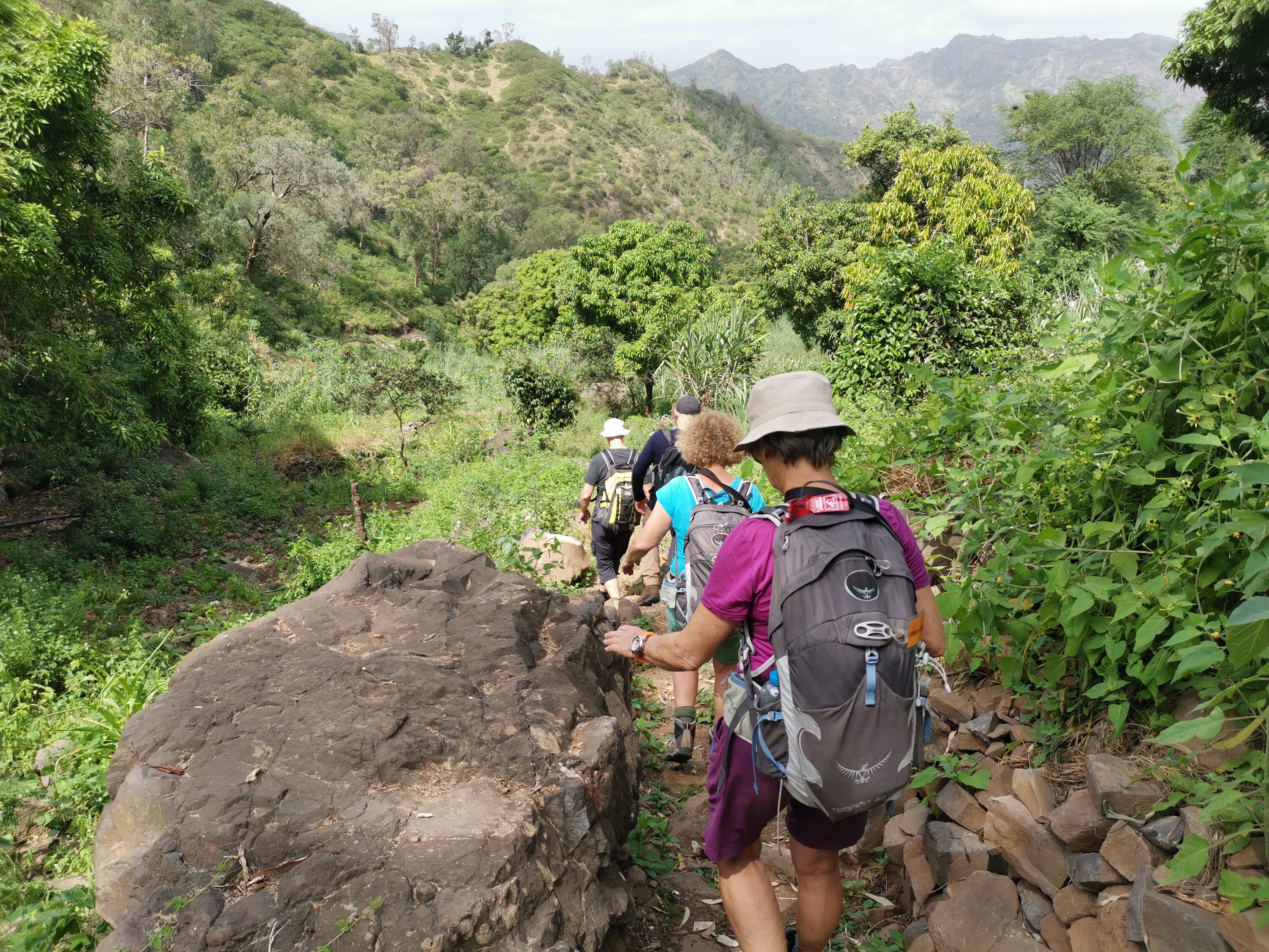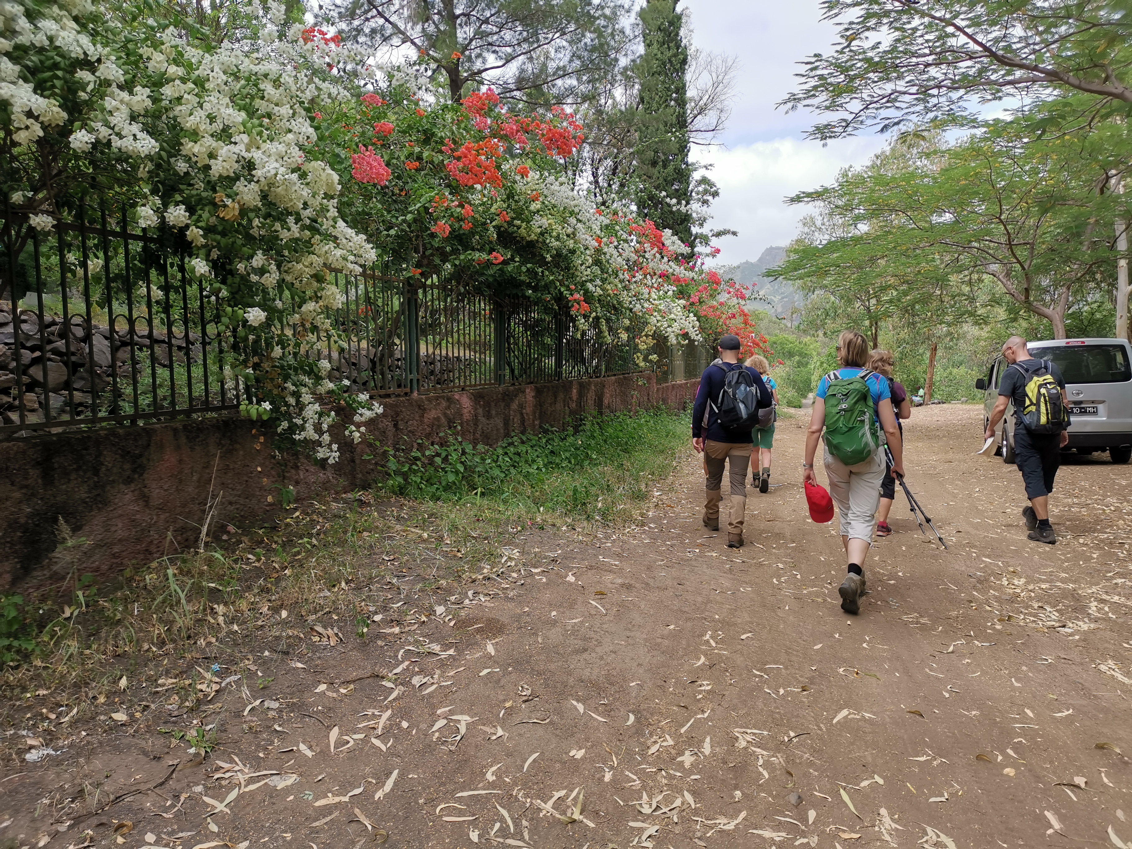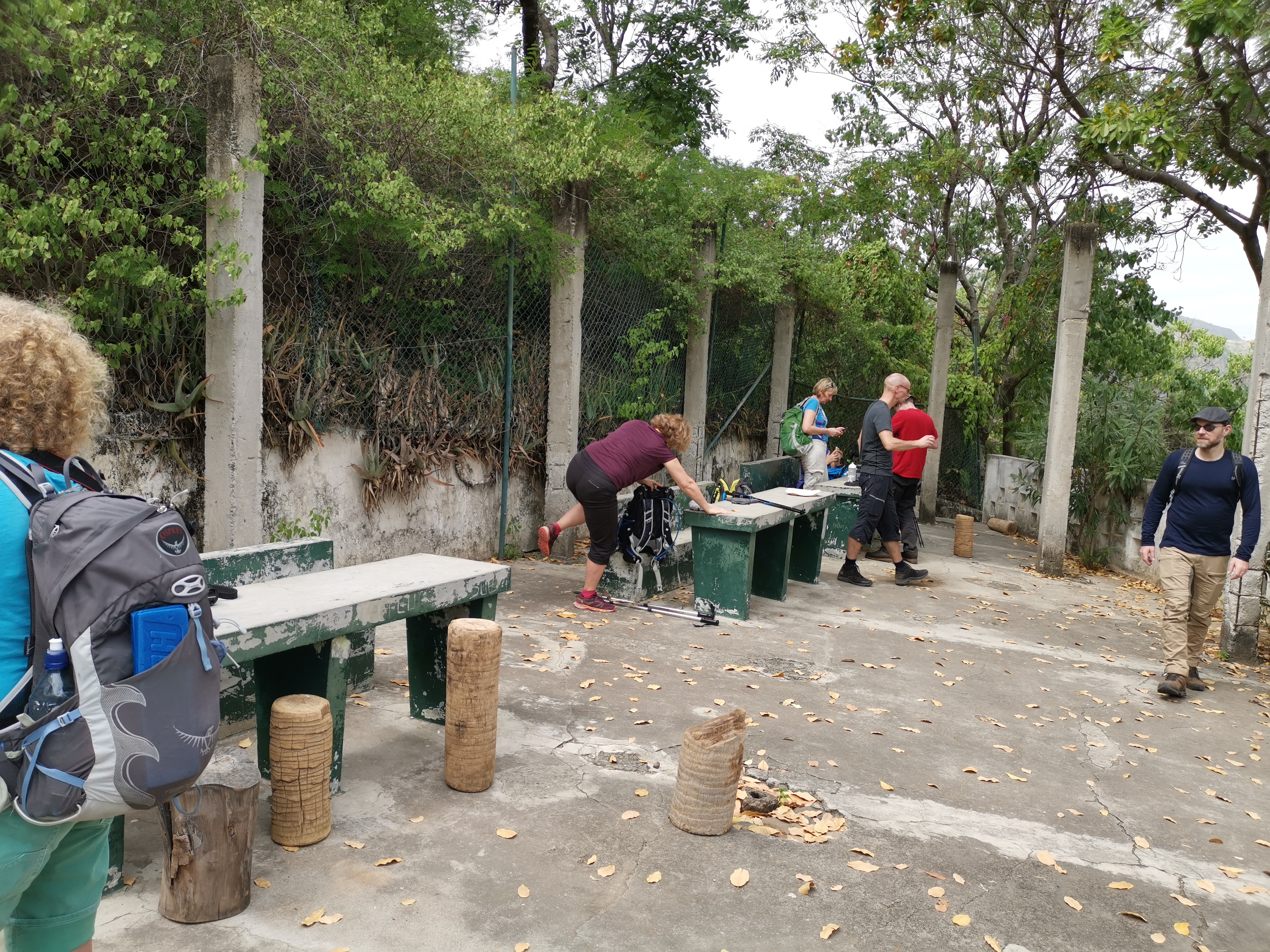Dagen vandring starter ud fra hotellet, hvor vi har en små 6 timers vandring foran os. Hotellet ligger i 800 meters højde og vi går af smalle bjerg stier godt 500 højdemeter ned til en lille botanisk have, hvor vi spiser vores frokost og derefter går den tilbage af andre, mindst lige så spændende og udfordrende stier.