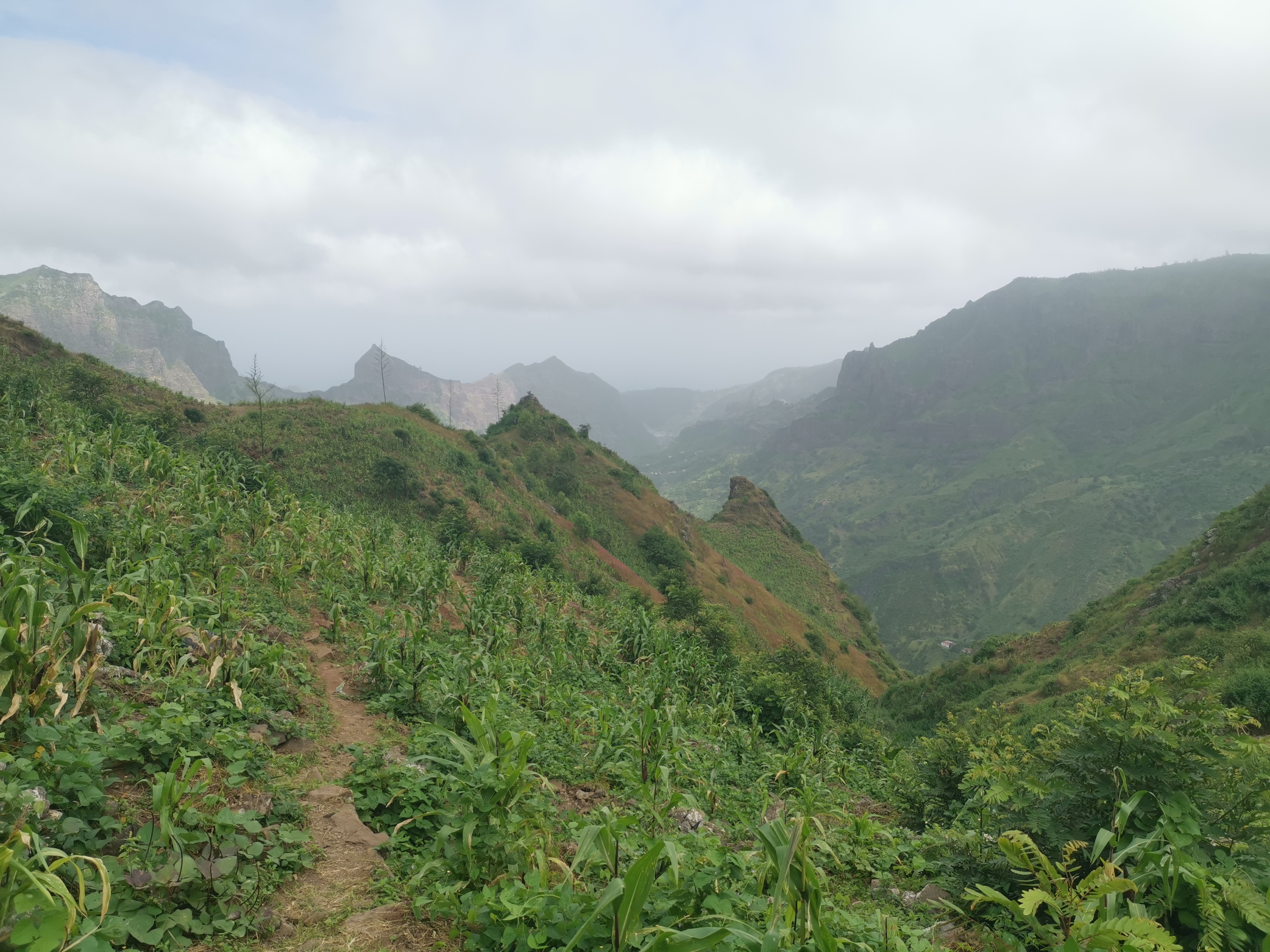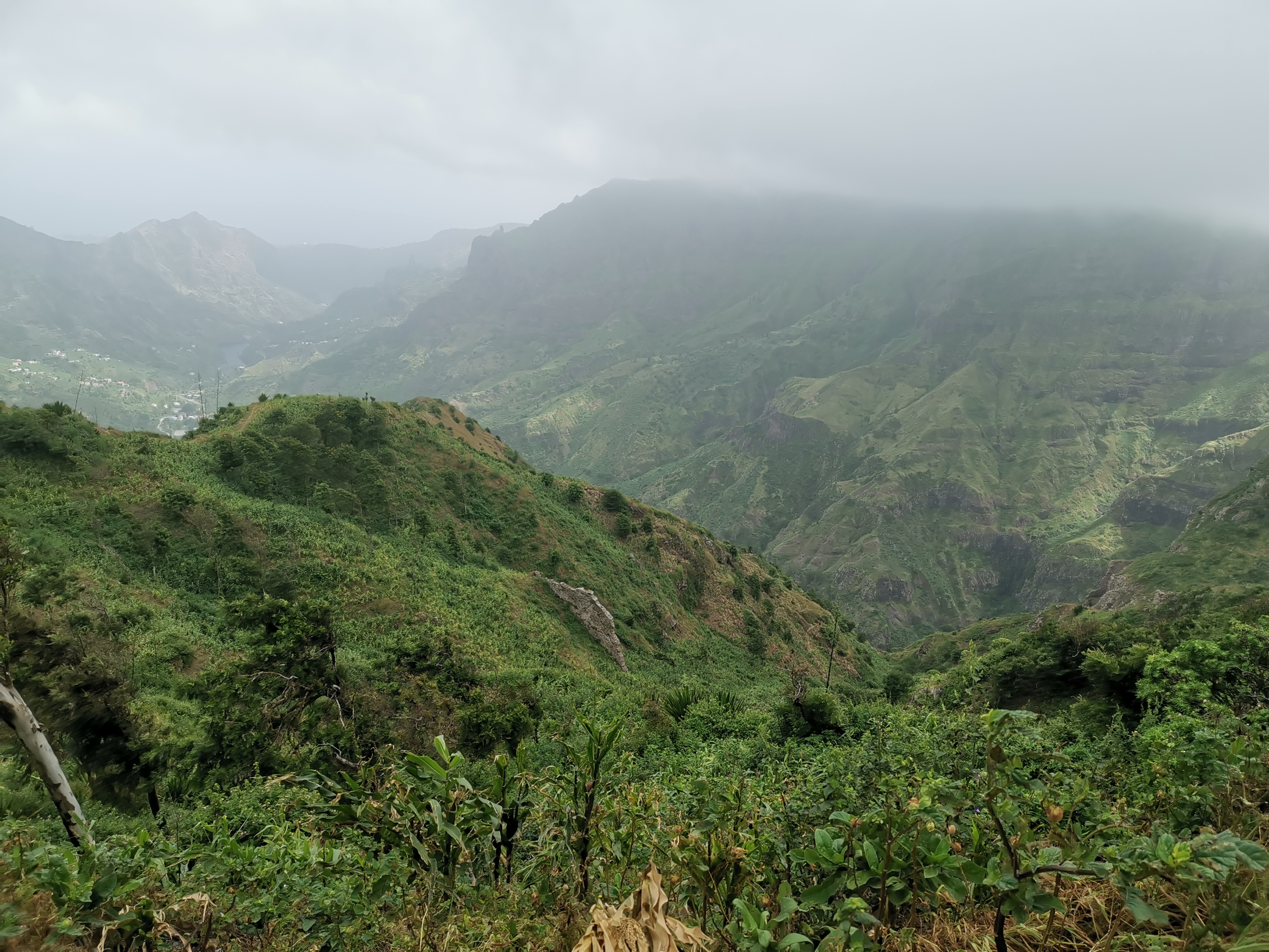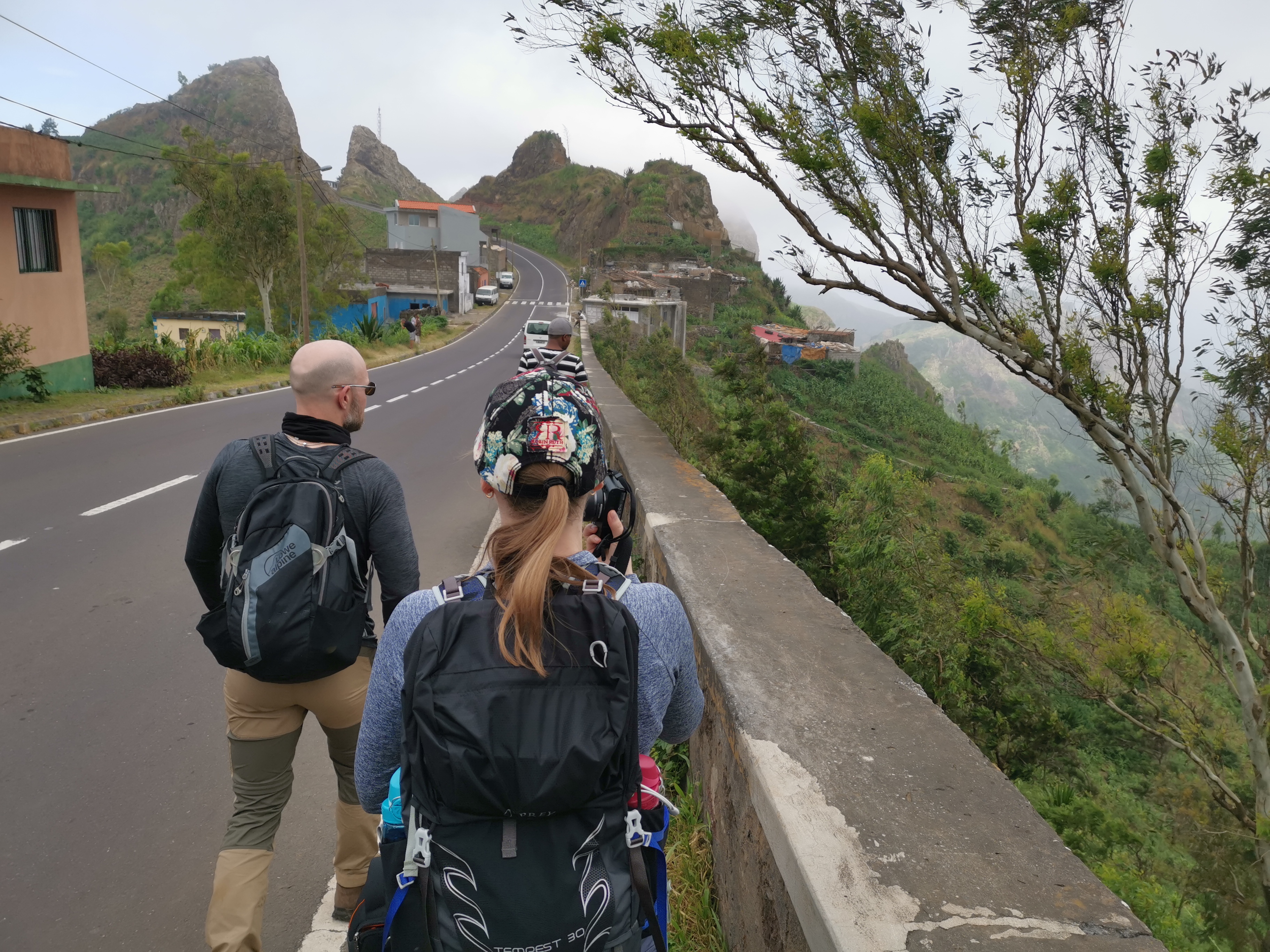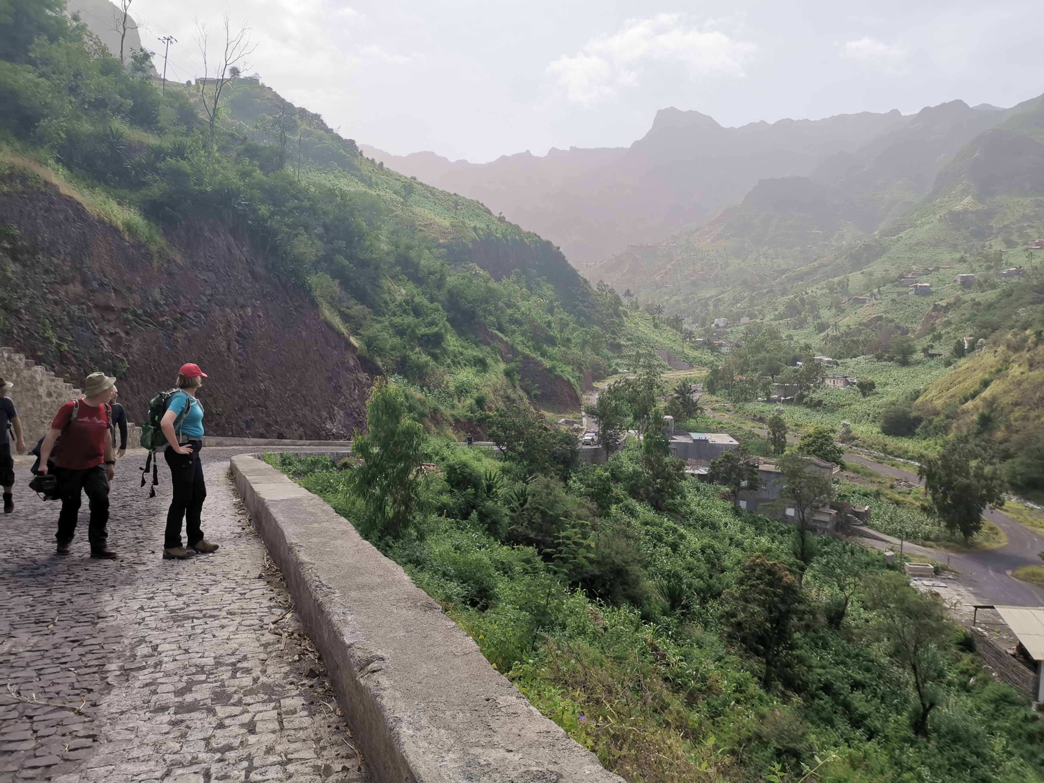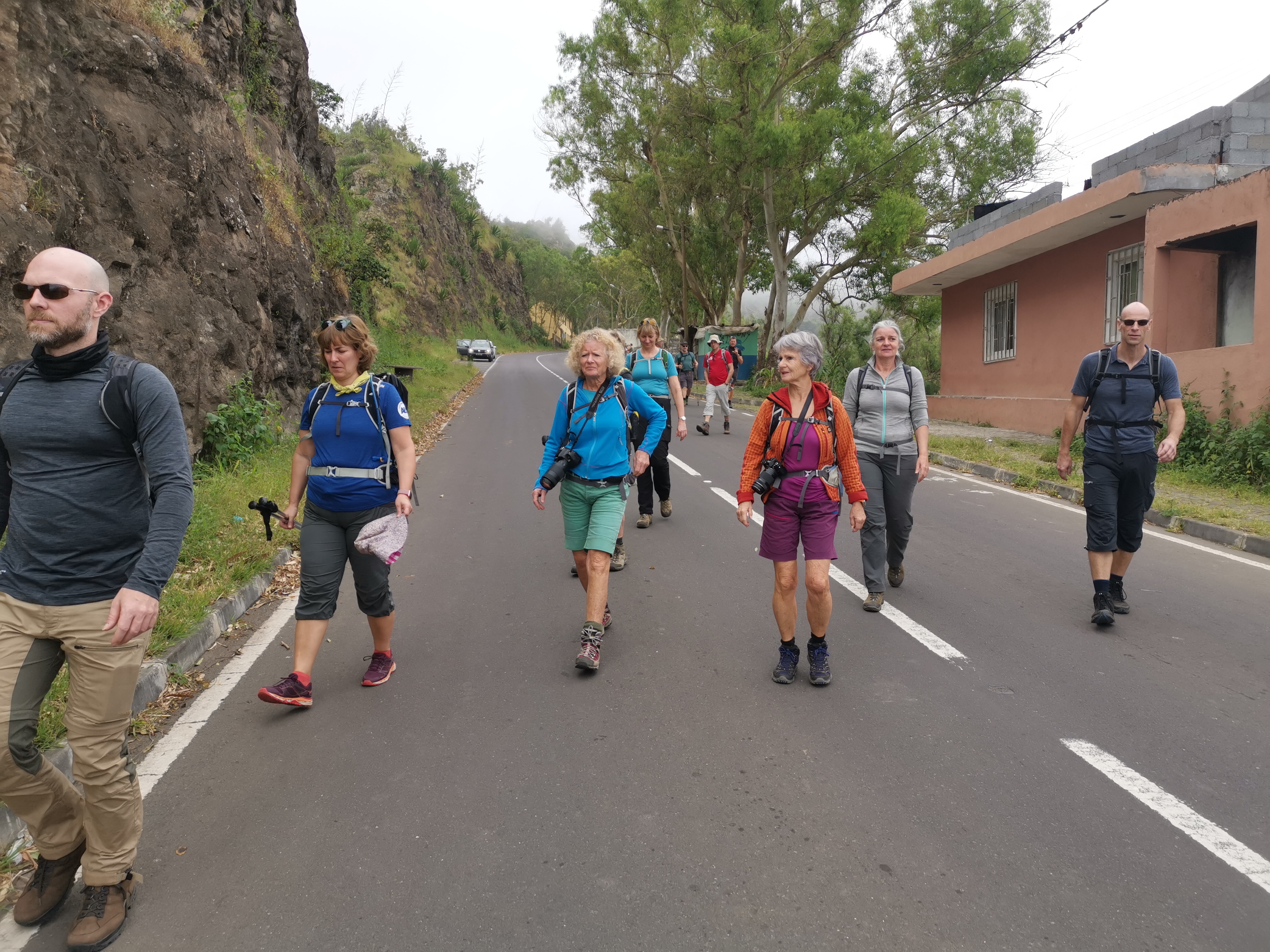 Vi starter vandringen et kort stykke langs landevejen med skøn udsigt over national parken. De grønne bjerg formationer ligner meget Madeira, men på en møde mere indbydelse. Det tegner til at blive en rigtig god vandring.