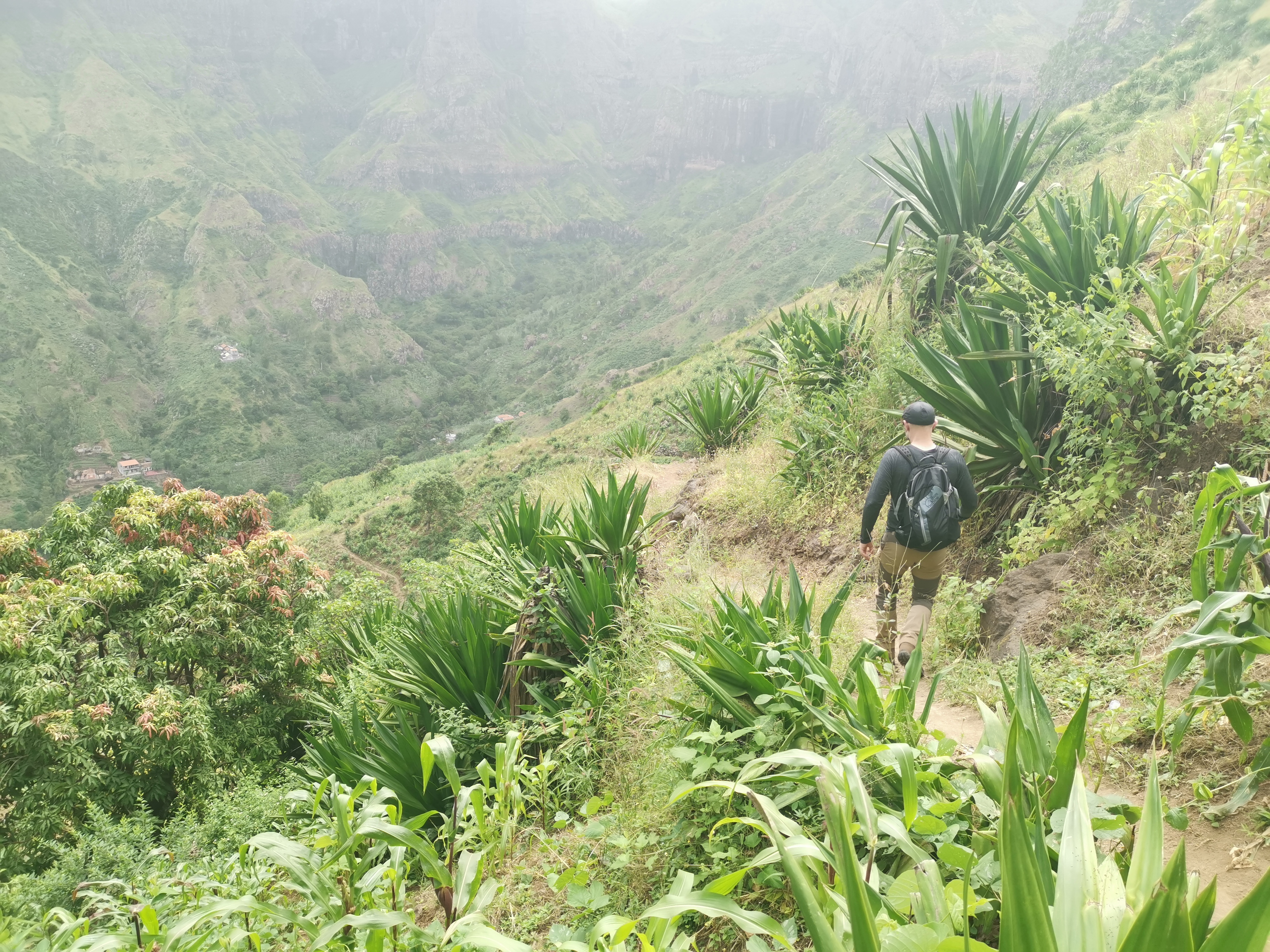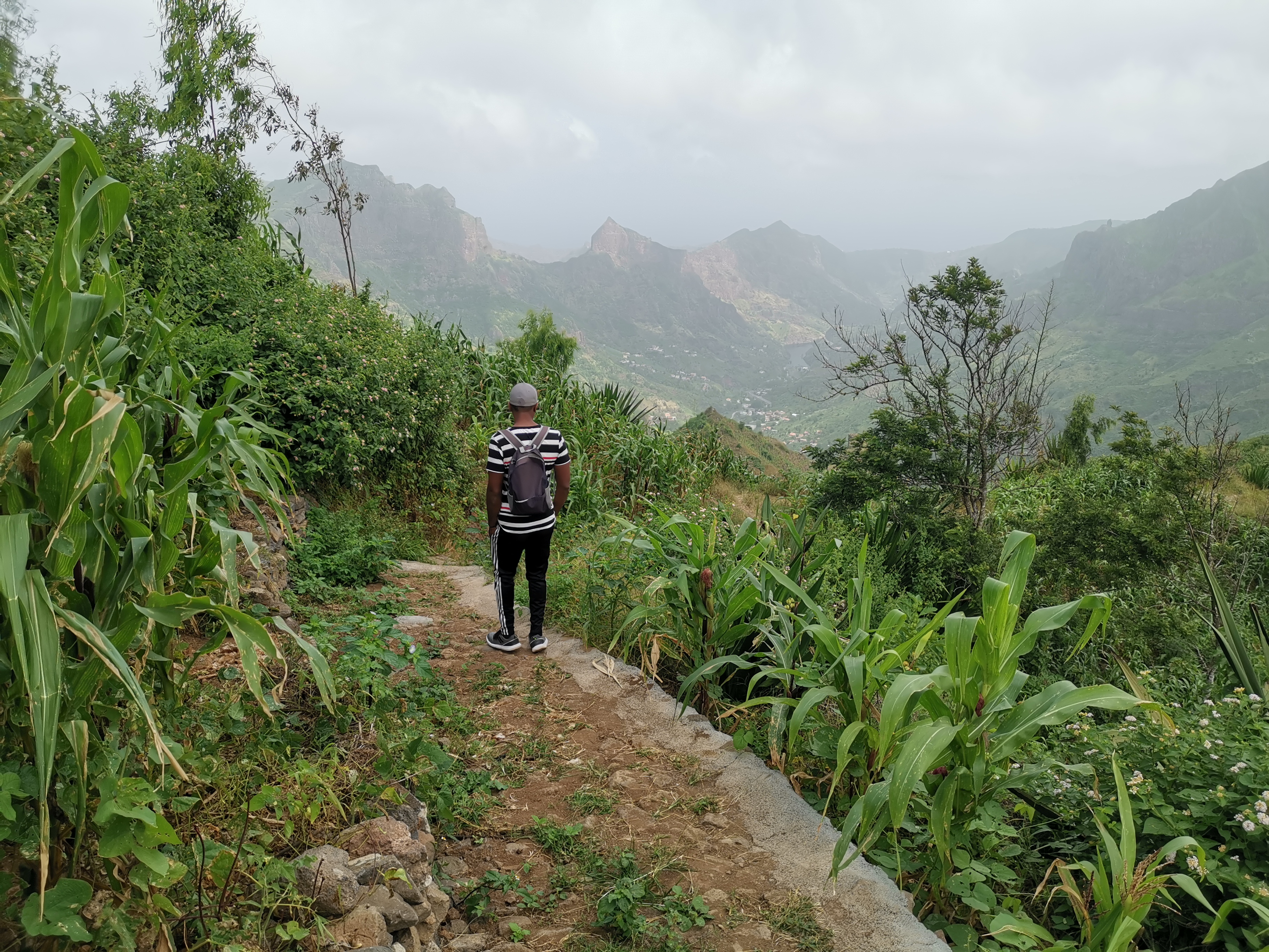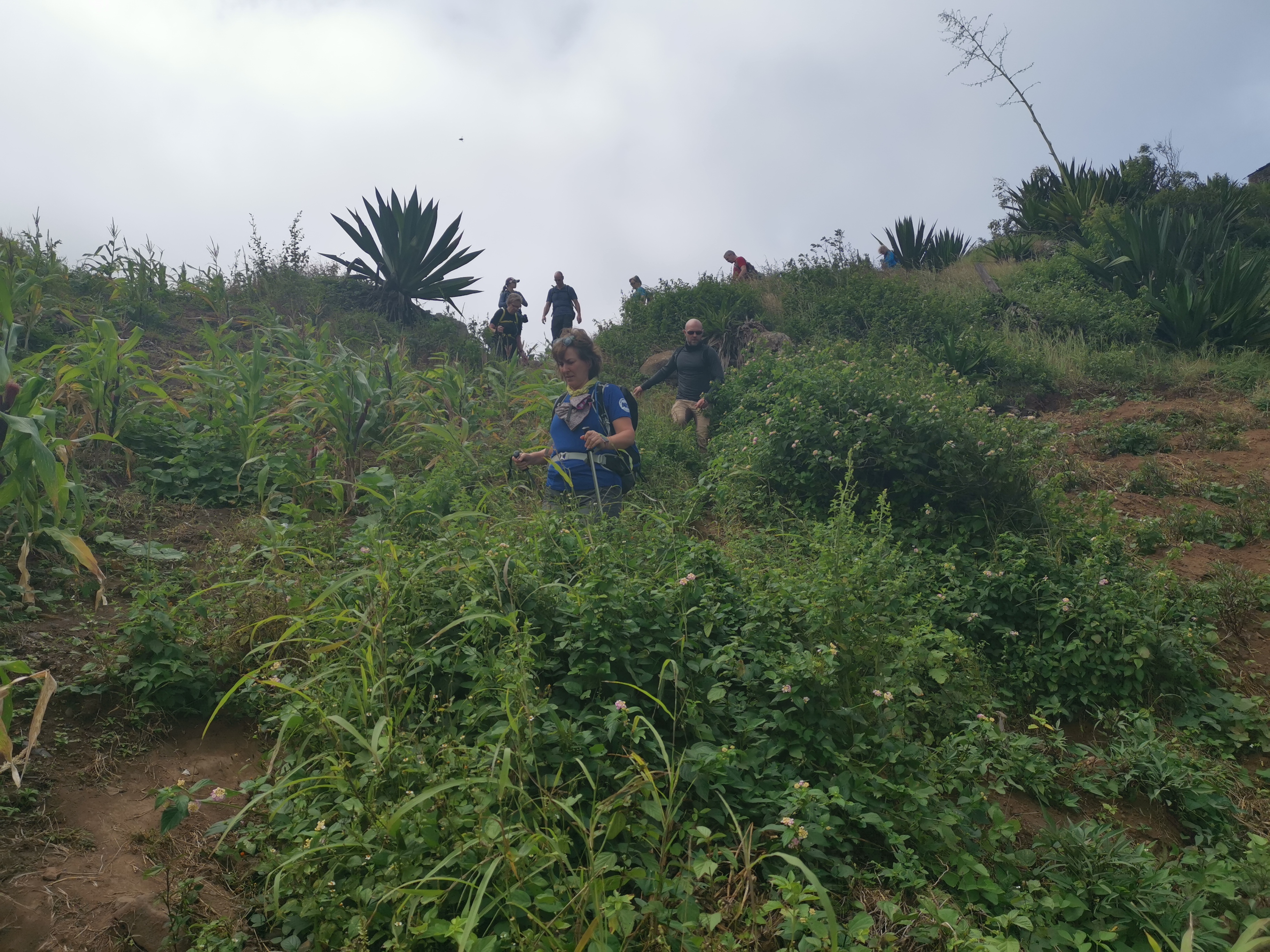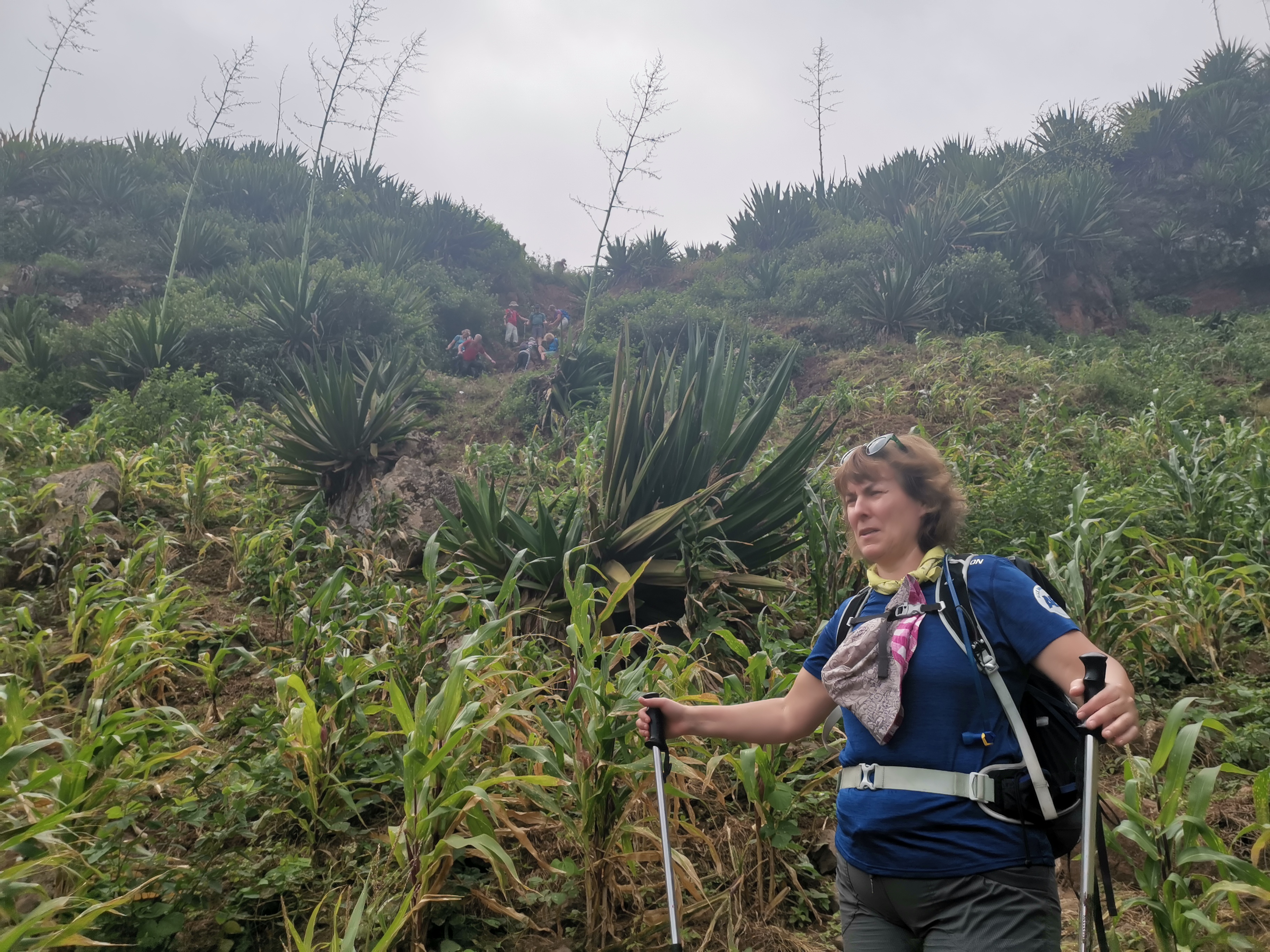 Vi starter vandringen et kort stykke langs landevejen med skøn udsigt over national parken. De grønne bjerg formationer ligner meget Madeira, men på en møde mere indbydelse. Det tegner til at blive en rigtig god vandring.