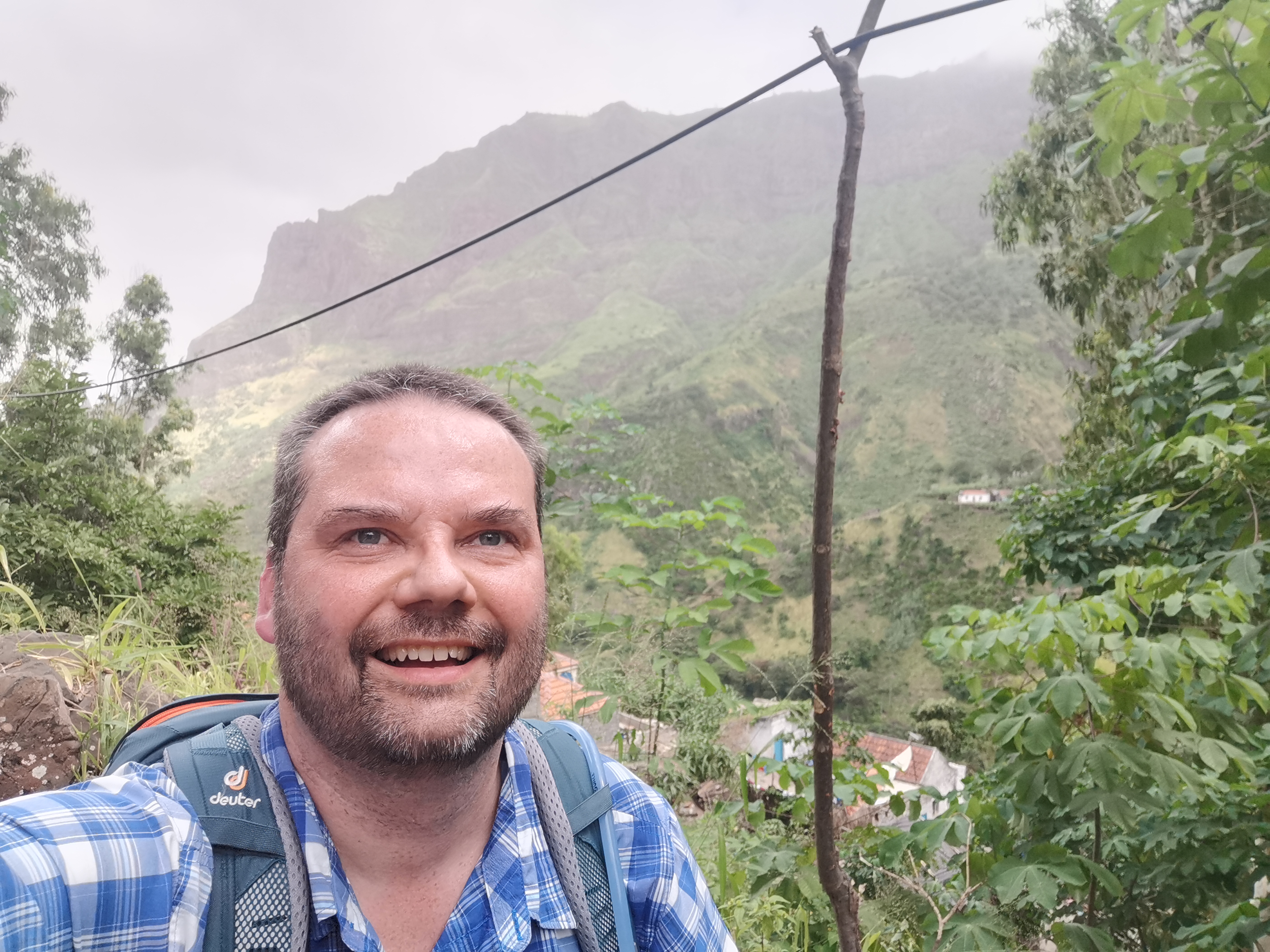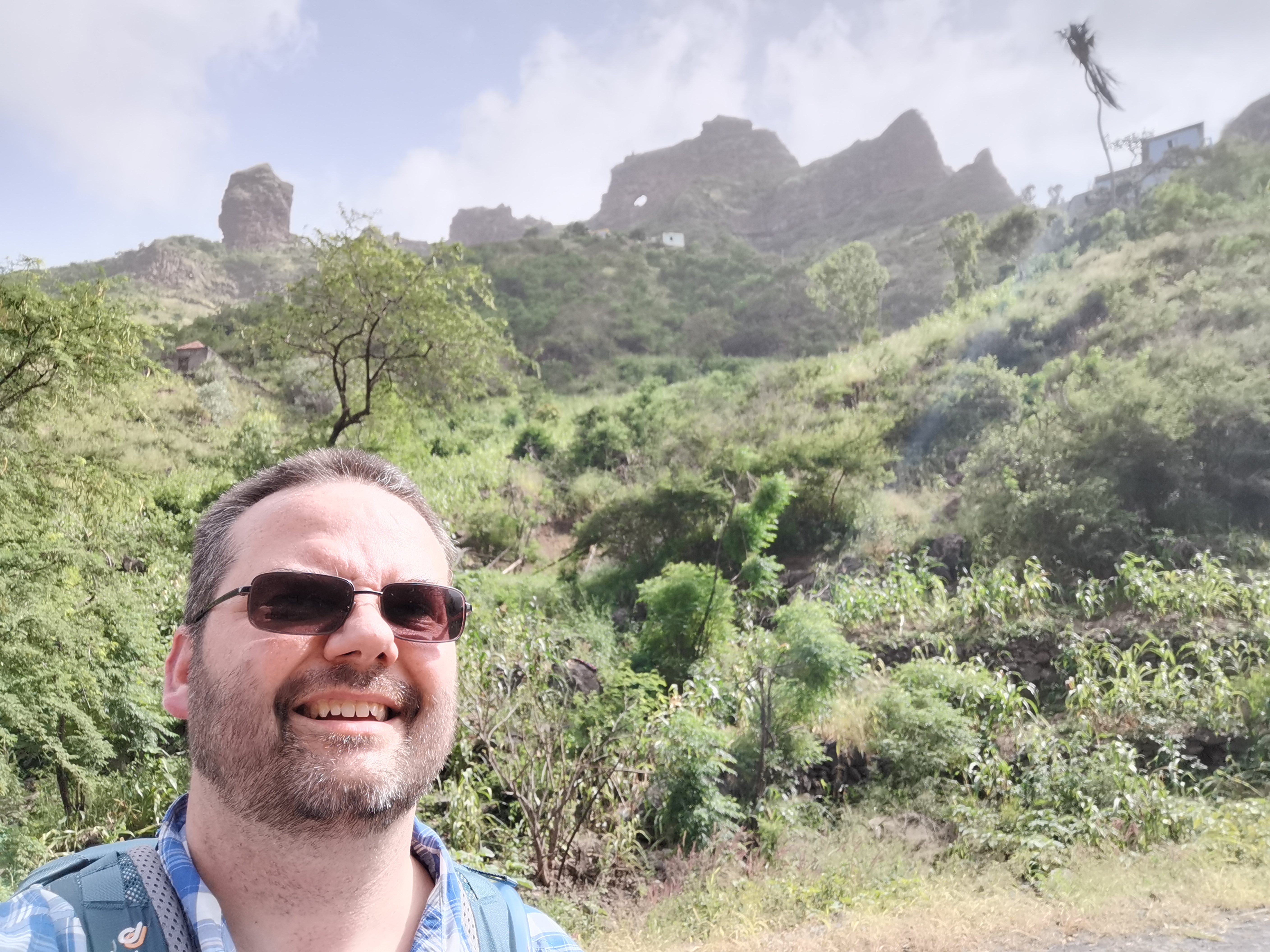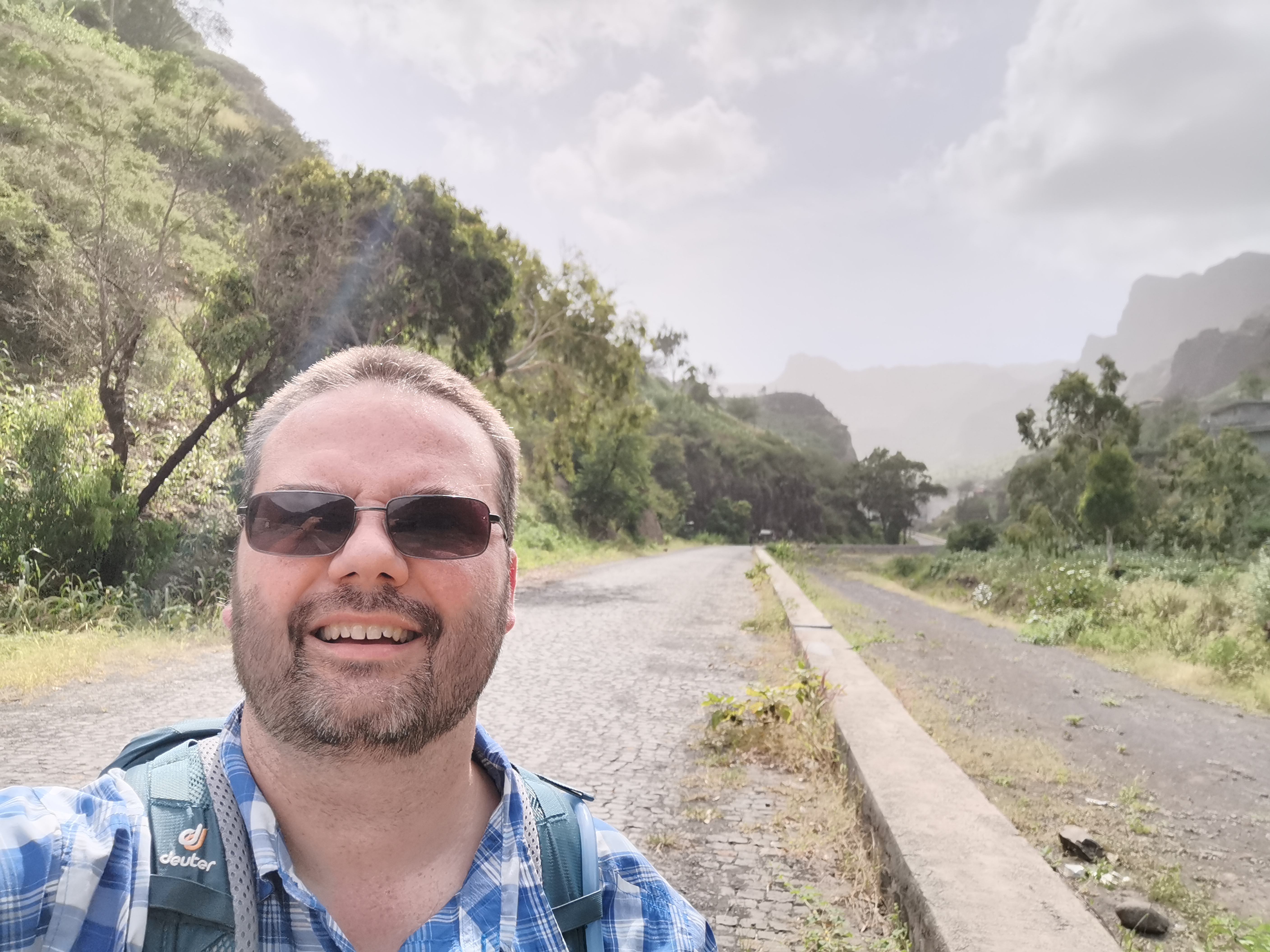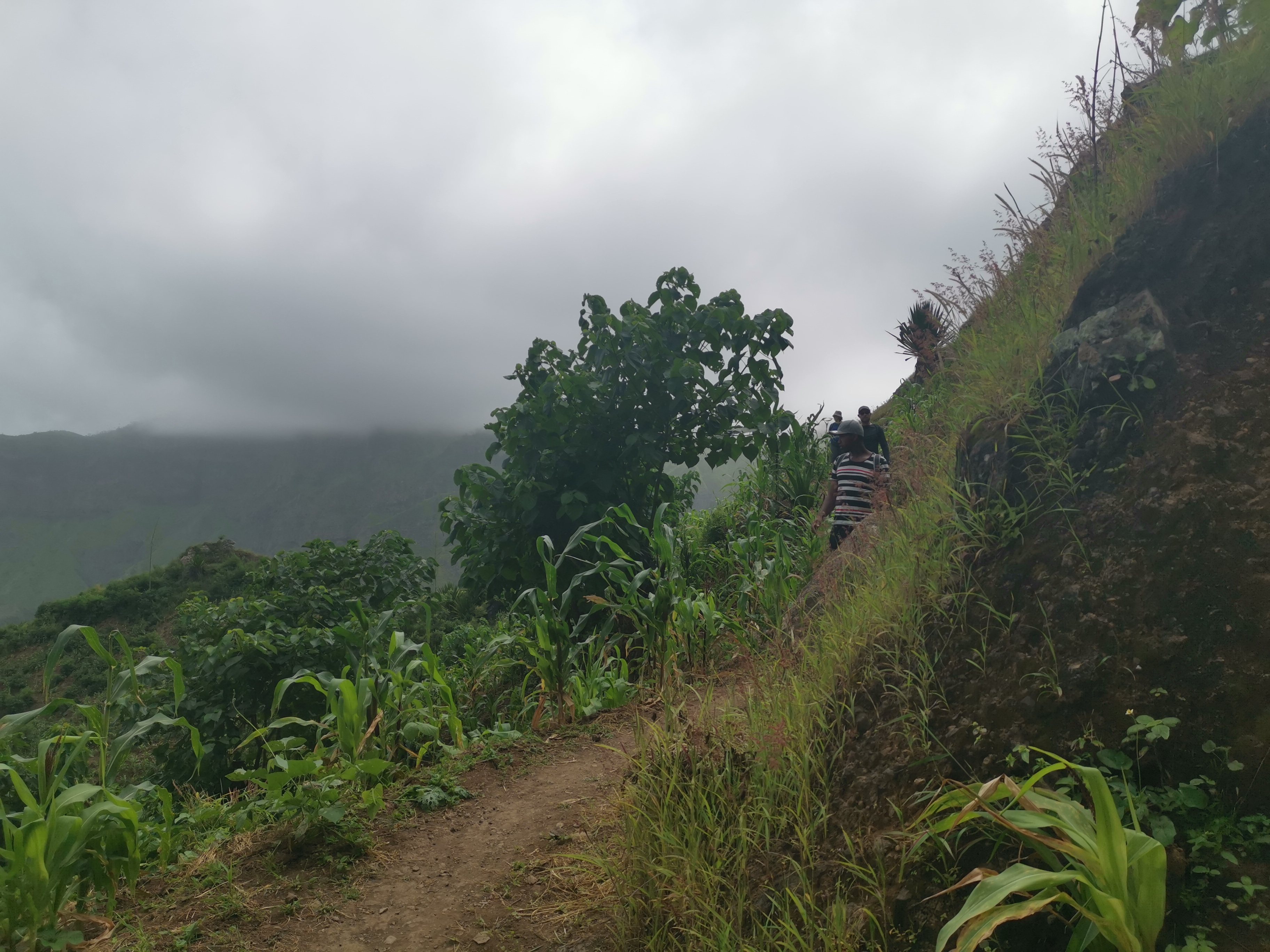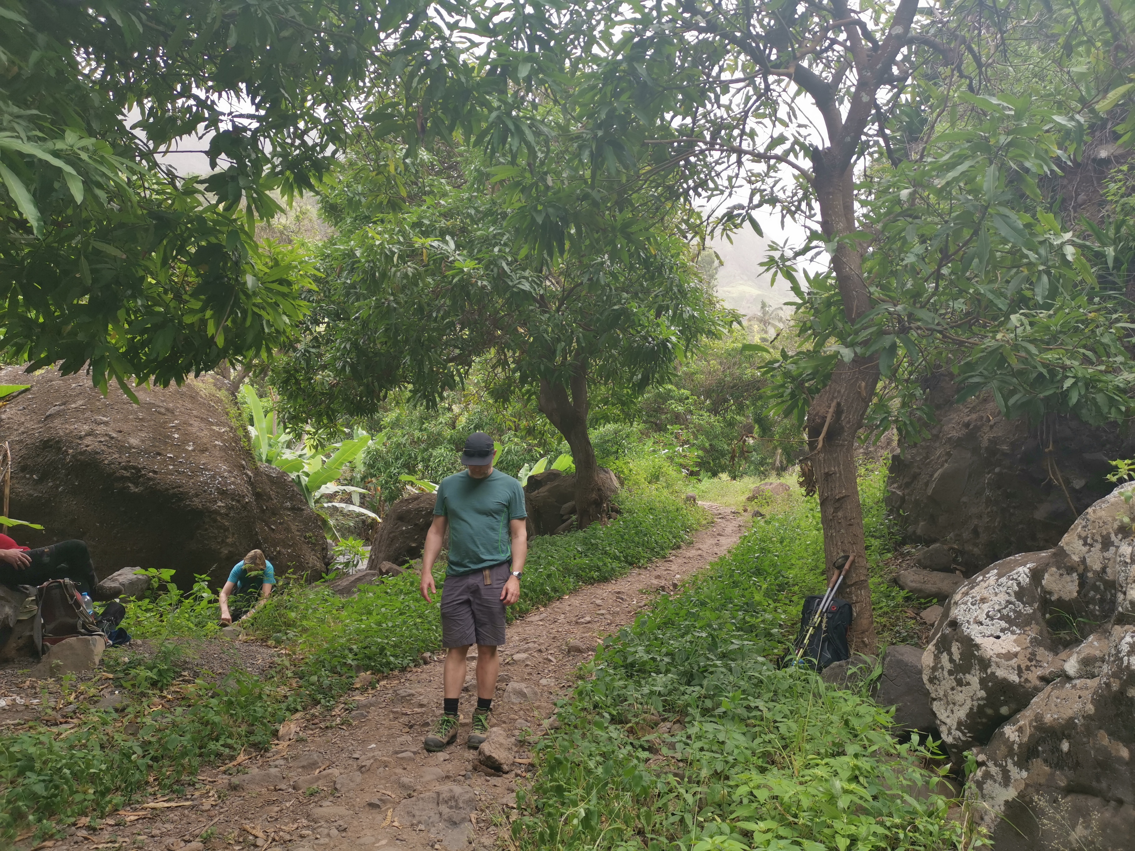 Vi starter vandringen et kort stykke langs landevejen med skøn udsigt over national parken. De grønne bjerg formationer ligner meget Madeira, men på en møde mere indbydelse. Det tegner til at blive en rigtig god vandring.