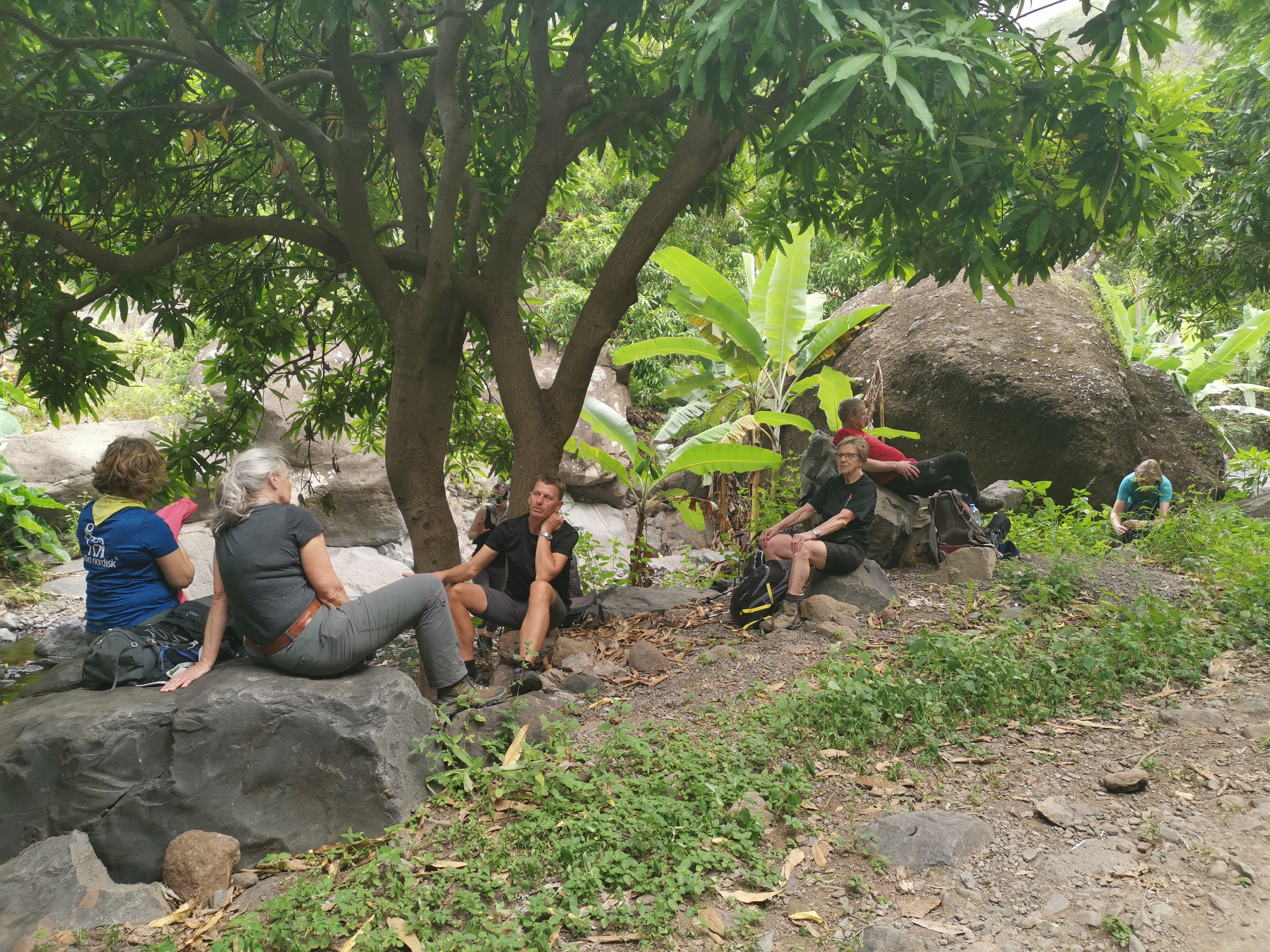 Vi finder snart et skønt lille sted til frokost, hvor Jakob, den lokale. Guide og jeg spiser alene i god frisk brise, men de andre ønsker at sidde i sol og med massere af fluer… Det må de jo om. Da vi jakob og jeg har spist går vi dog tilbage til de andre og hygger os inden vi går videre.