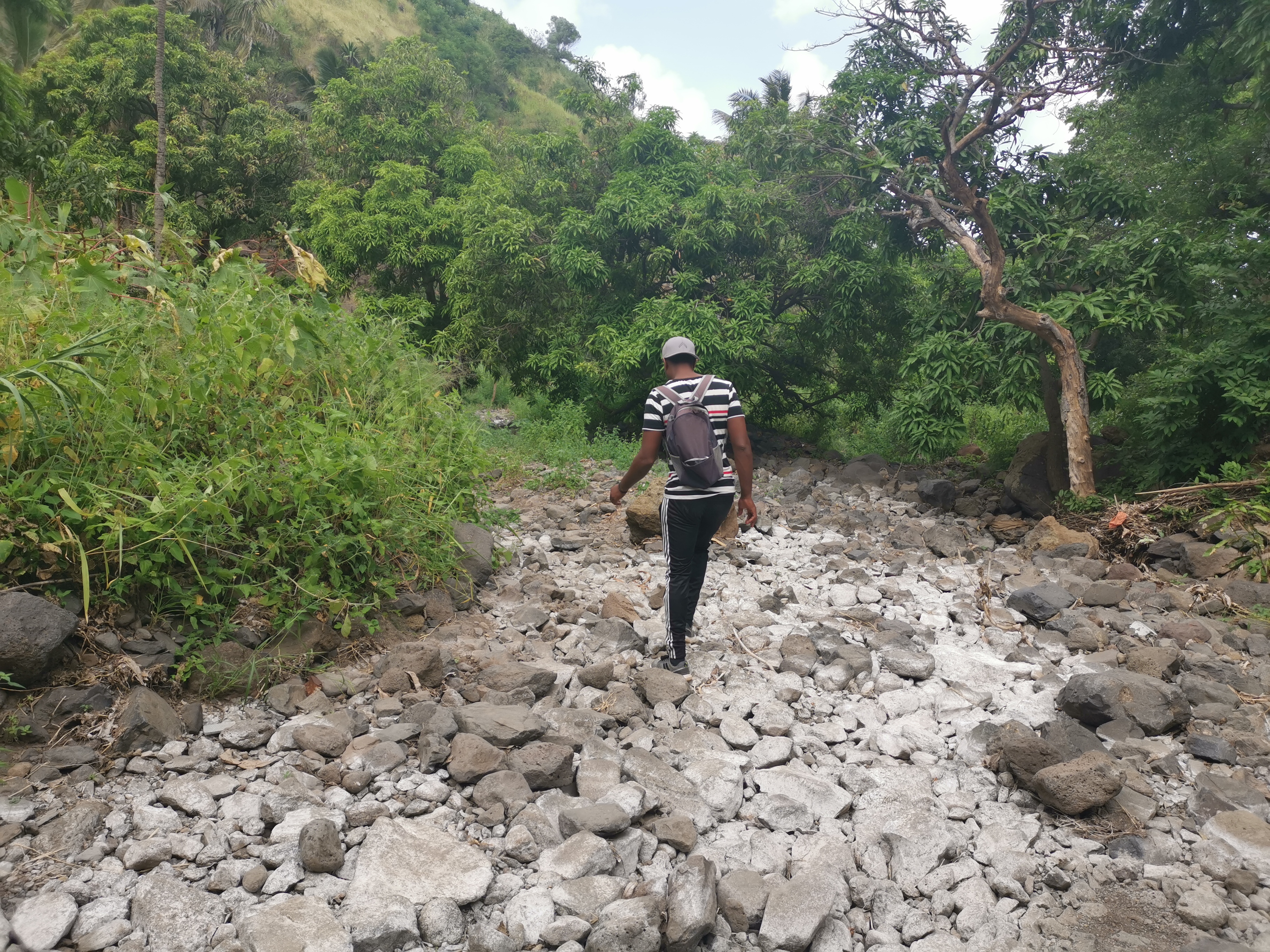 Efter frokost fortsættes nedstigningen dog er stien ikke længere så ekstrem stejl. Derimod går vi en et aflagt flodlege hvilket ofte er meget hård for benene, og denne vandring er bestemt ikke nogen undtagelse. De store løse sten er ikke let at gå på. Jeg er i den glad for mine vandrestøvler på turen i dag.