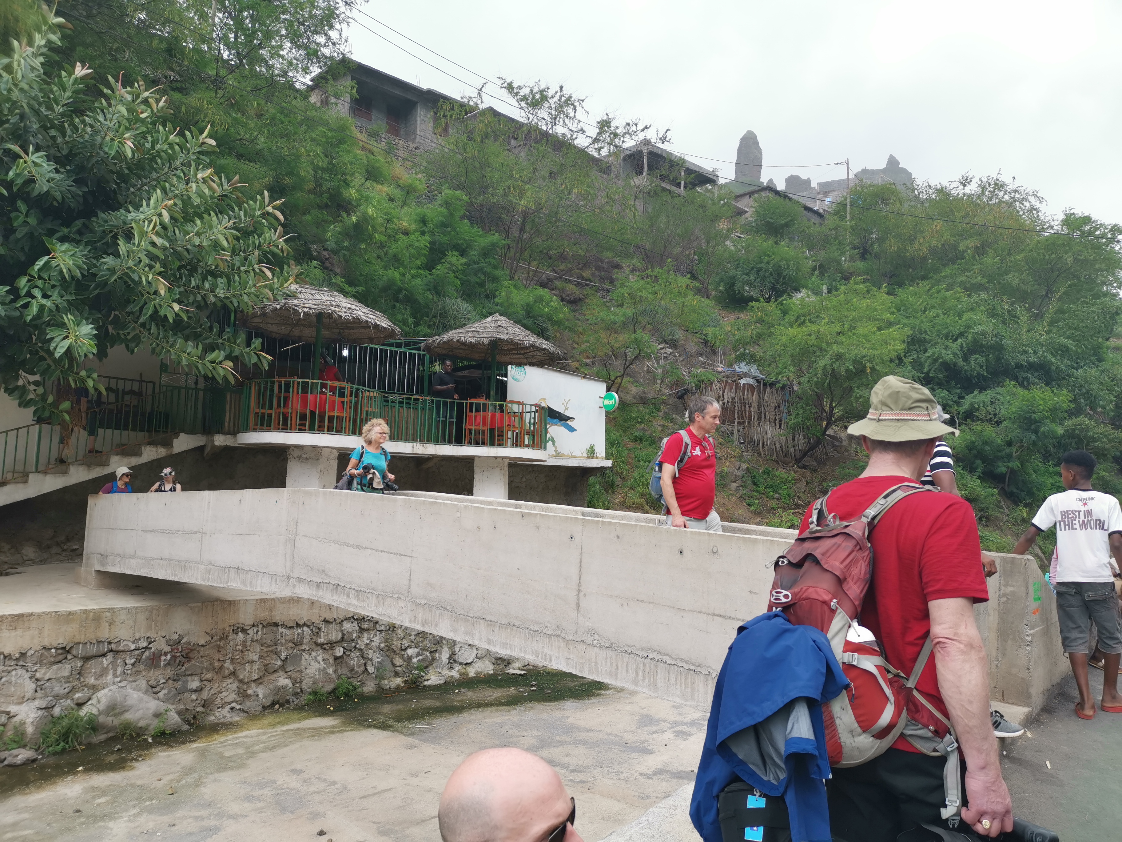 Bussen holder nu ved baren og vi får valget om at fortsætte med at gå de sidste kilometerer eller køre med bussen. Alle vælger at gå, og de fleste lægger rygsækken fra sig i bussen.