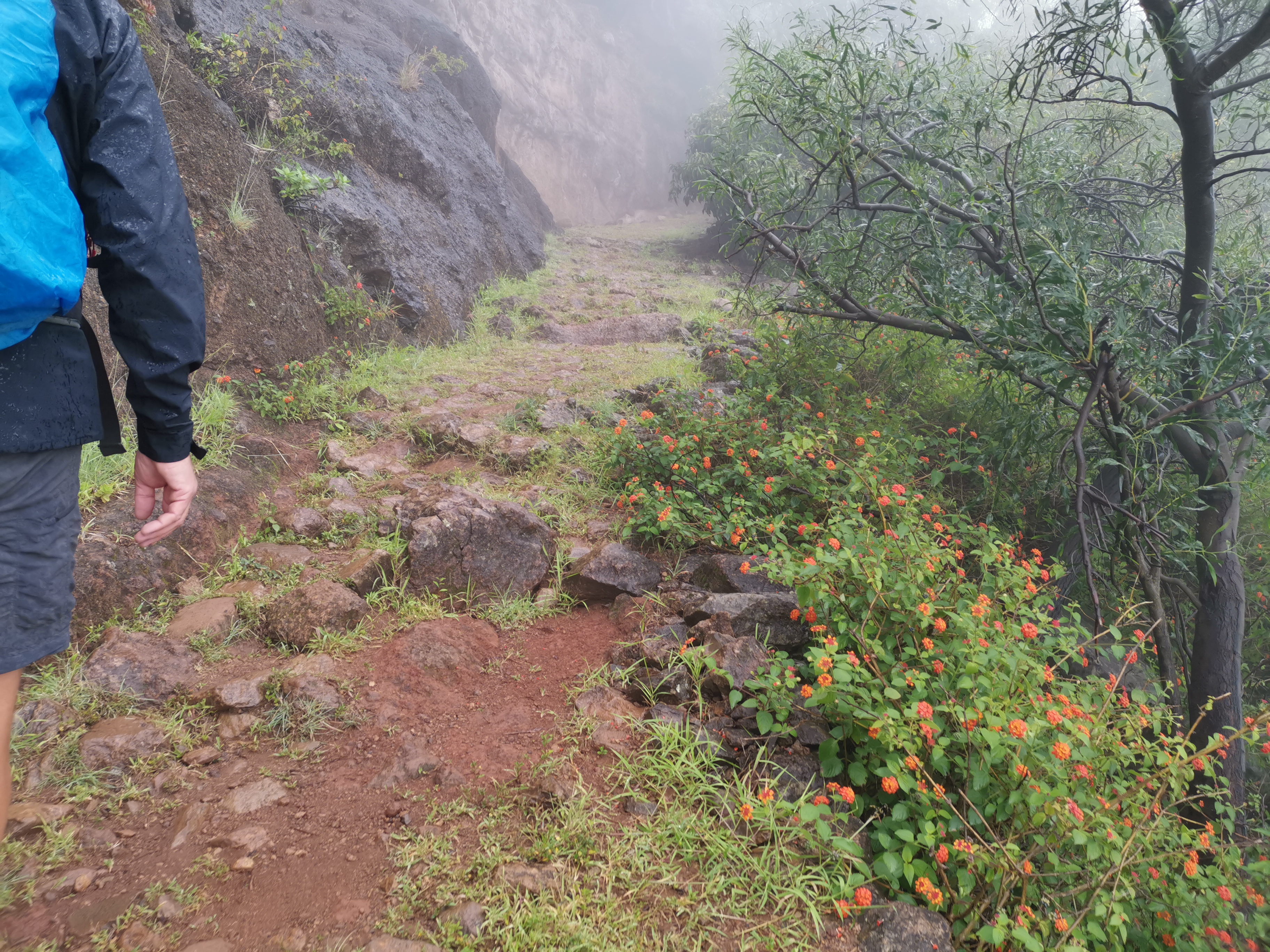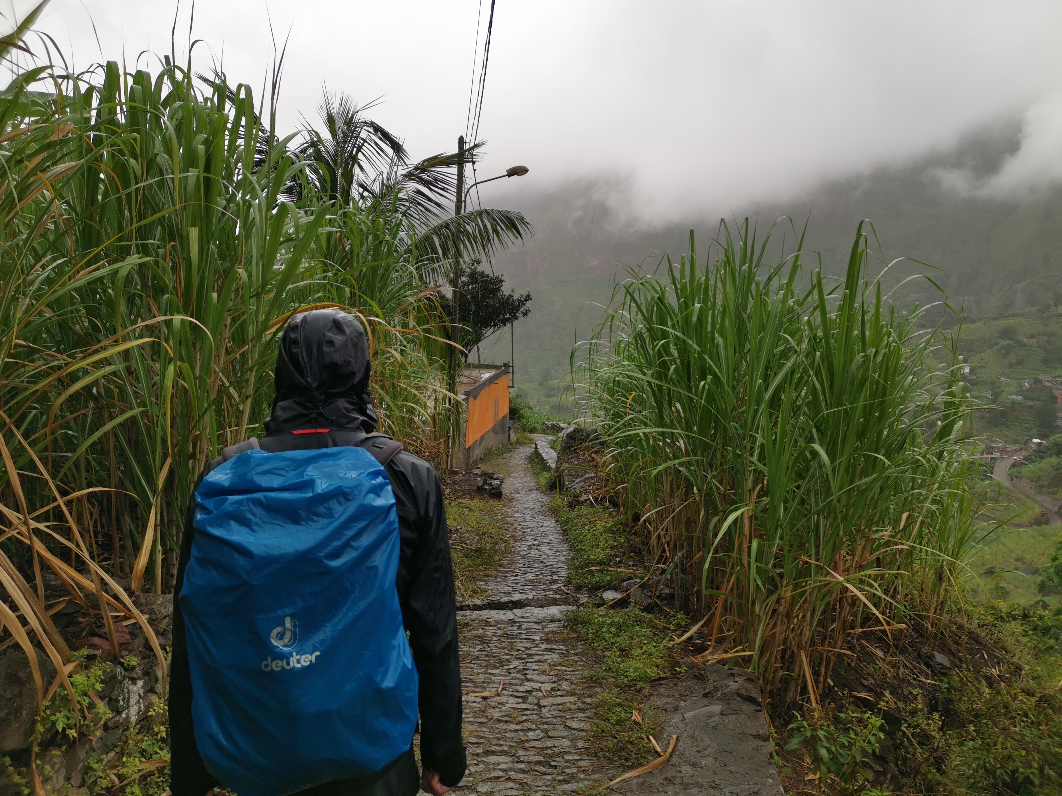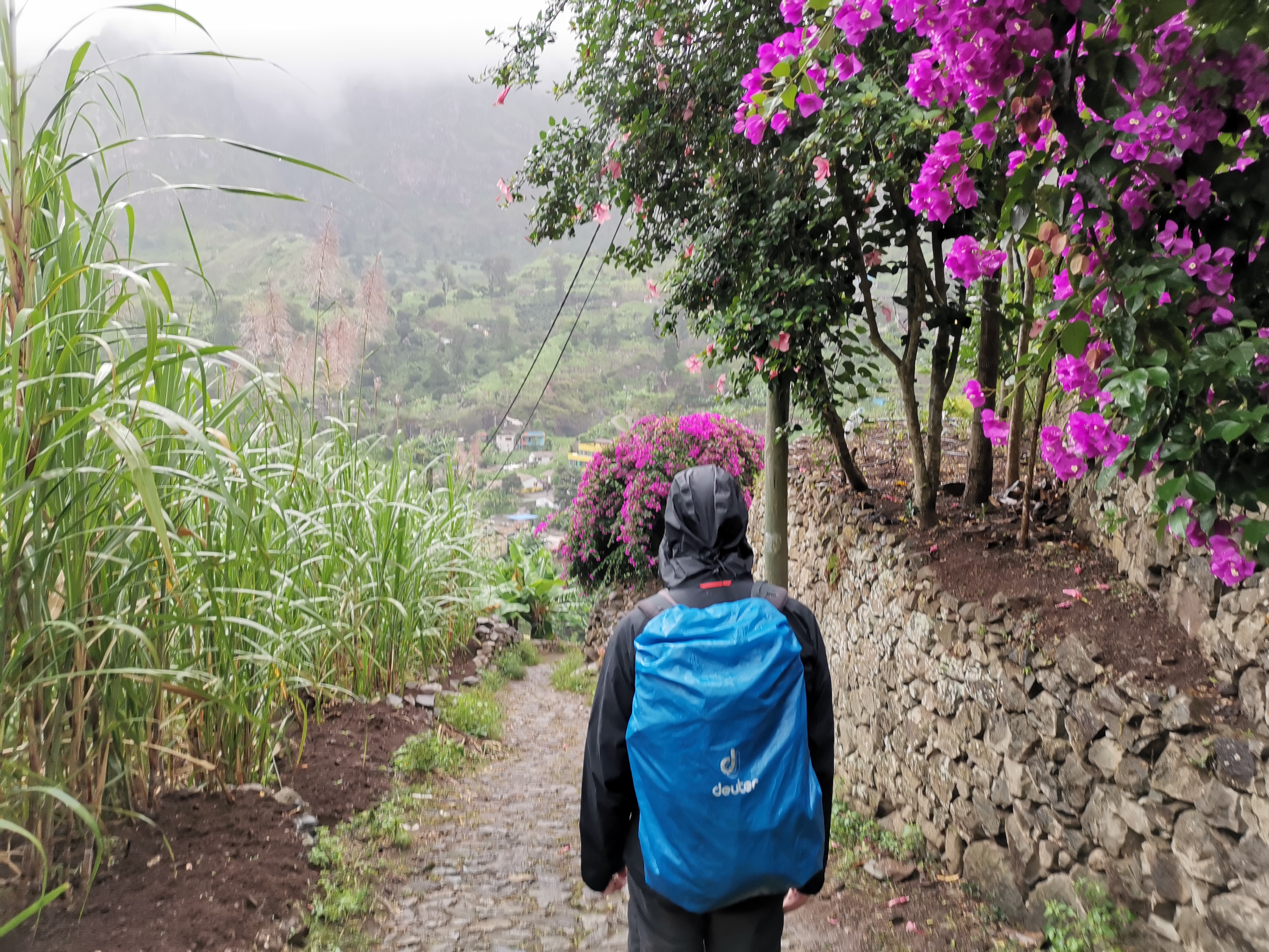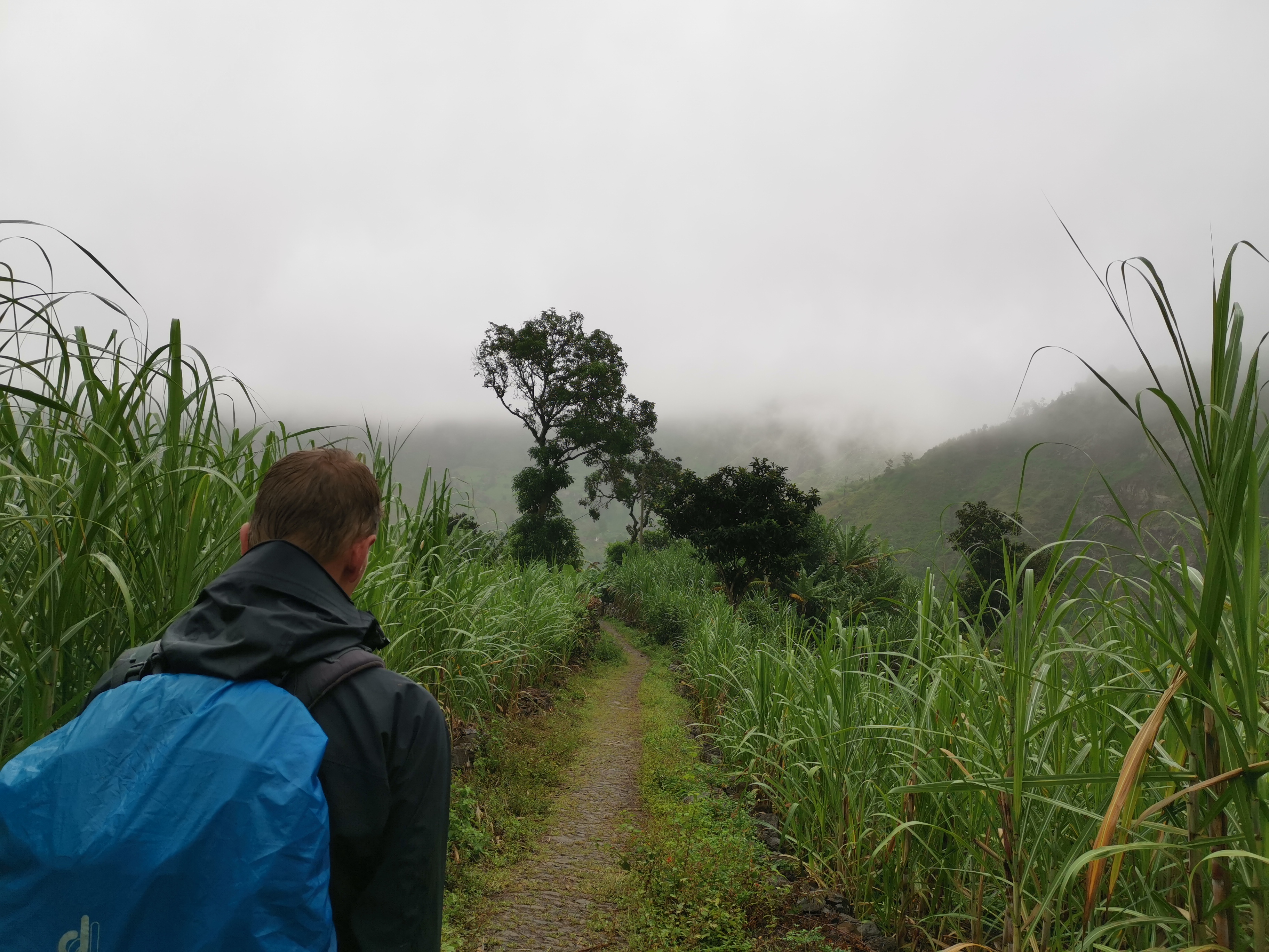 Netop som vi ankommet begynder regnen og det er desværre totalt overskyet. Så på med regntøjet og afsted det går. Vi starter med 100 højdemeters stigning.