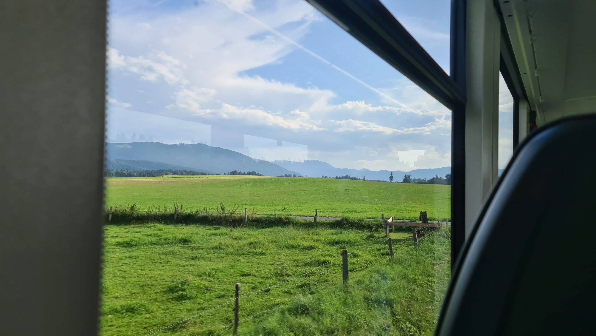 Næste tog tur bliver dog hurtigt mere interessant. Ved byen Warngau dukker pludselig bjerge op i horisonten og vi køre det meste af turen igennem skove og til tider åbner græsmarker med græssende dyr…. Jeg mærker at ferien er ved at starte.