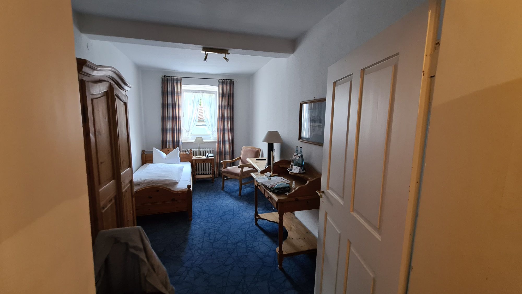 Ved ankomst til Bad Tölz station beslutter jeg at gå de ca 1,5 km til hotellet, der er jo trods alt hjul på kufferten. Hotellet er ikke noget specielt, men fint nok for mig. Værelset kunne dog være bedre, ikke det bedste før i morgen hvor jeg har en fridag og kunne havde brugt lidt på en balkon… men den må jeg drømme om.