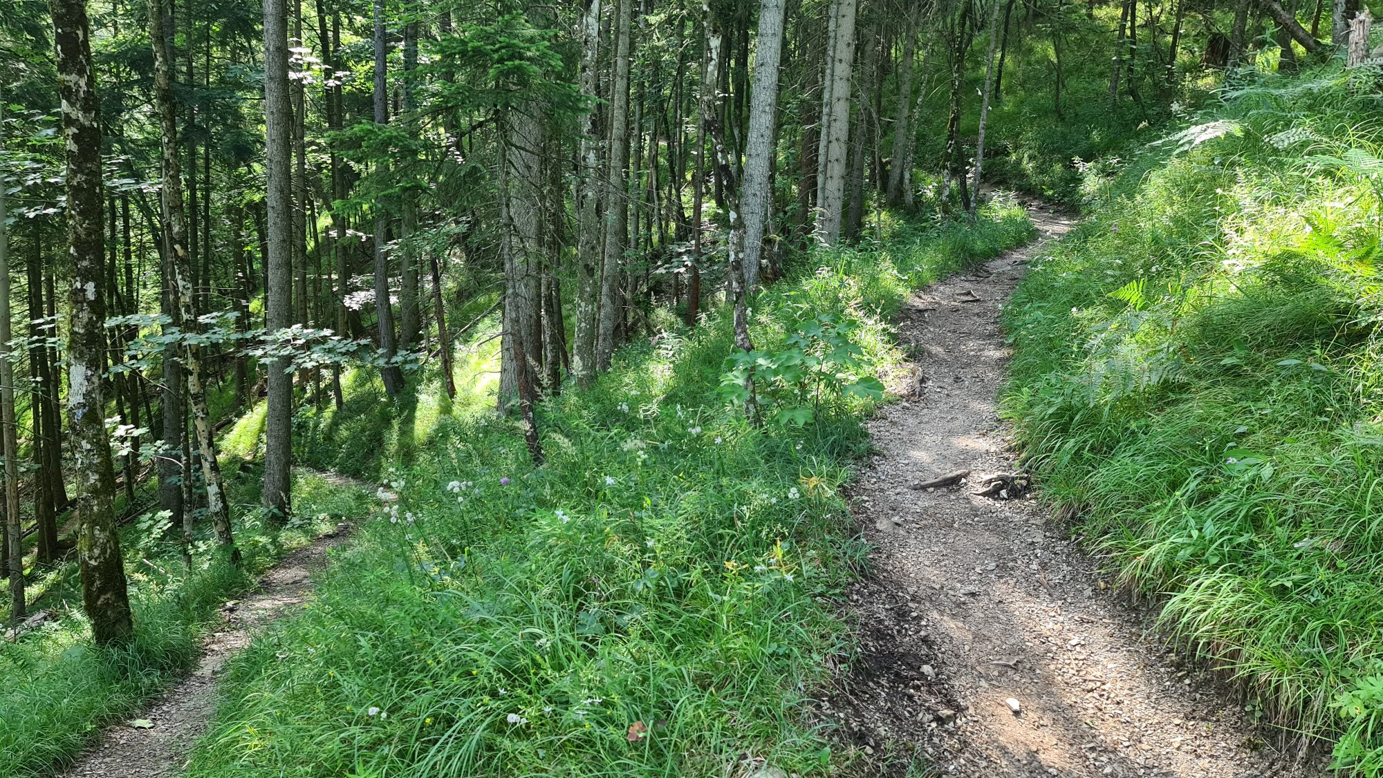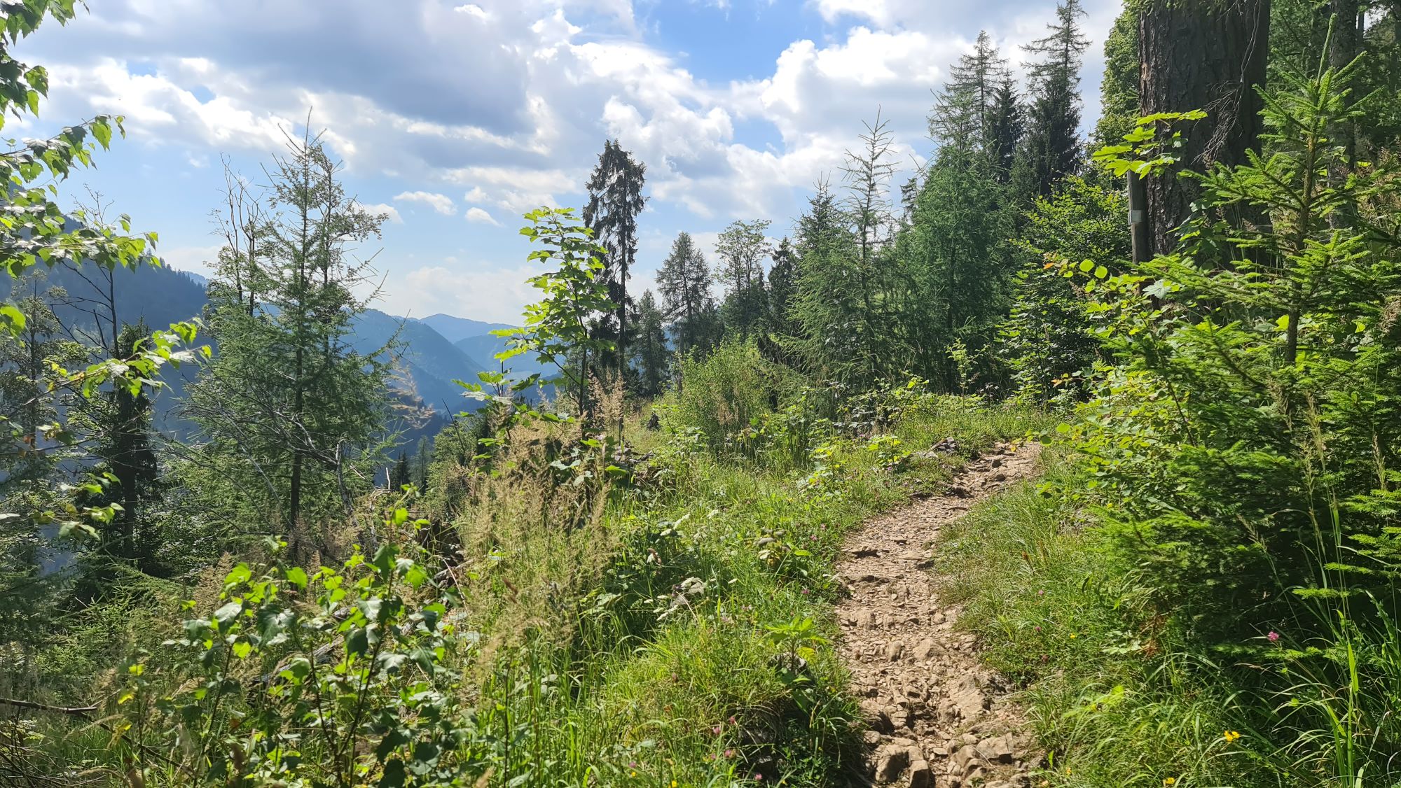 Sammenlignet med de seneste dage er stigningen en smule mindre, og derved en lettere rute. Der er ikke meget at se de første 45-60min (ca 300 højdemeter) hvor skoven hovedsageligt er tæt. Indtil videre jeg har det godt, selv kondien er ikke er stort problem…. men det skal komme til at ændre sig.