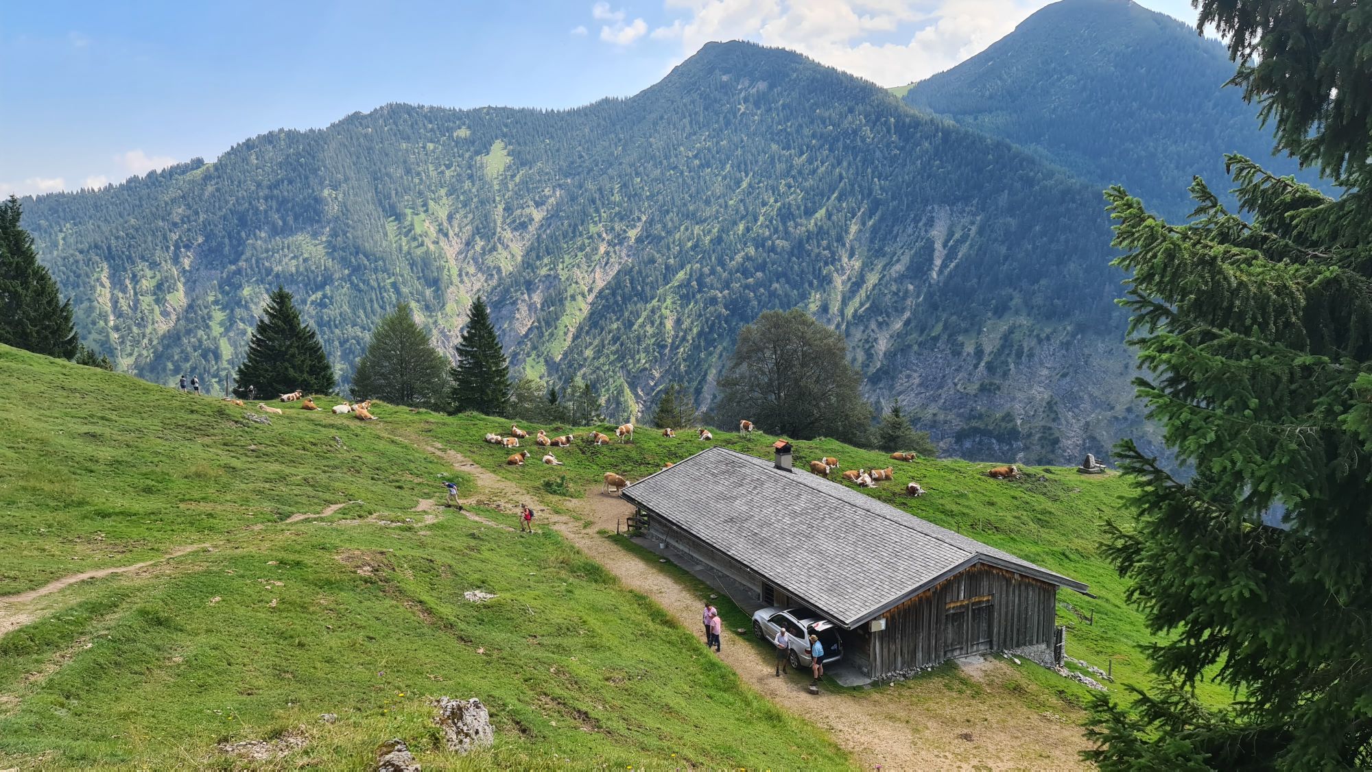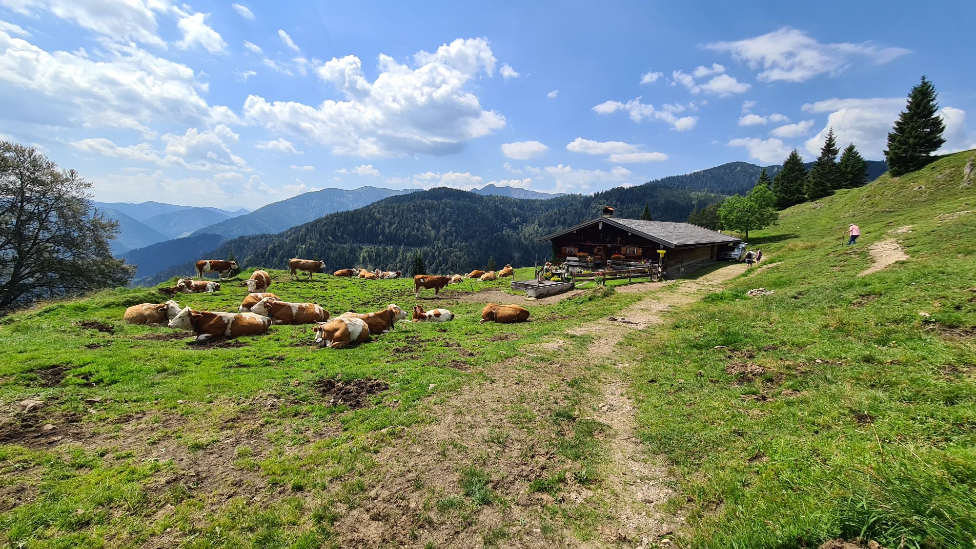 Lidt længere fremme ser jeg nu hytten fra tidligere. Der er tomt, men jeg er udmattet og har behov for et eller andet, så jeg står lidt og venter i nogle minutter undtil ejeren kommer rundt om huset. Jeg spørger om jeg kan løbe noget koldt at drikke og får et ja… det er et udskænkning sted, der ikke reklamere med det. Efter at have siddet der i 10 minutter kommer de ældre forbi, de kender stedet og taler personligt med værtinden… ikke at jeg forstår så meget af det… for det er godtnok ikke en tysk dialekt jeg kender. Men inden jeg går ender jeg da lige med at tale med dem alle og fortæller lidt om min tur… får som farvel besked på at hilse kongen… de må være gamle hvis de tror Danmark har en konge.