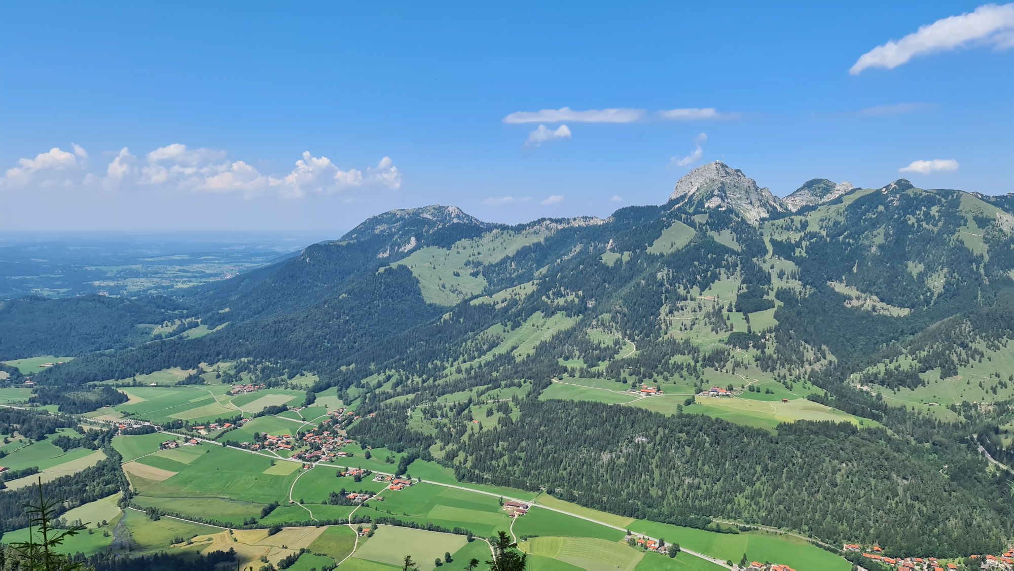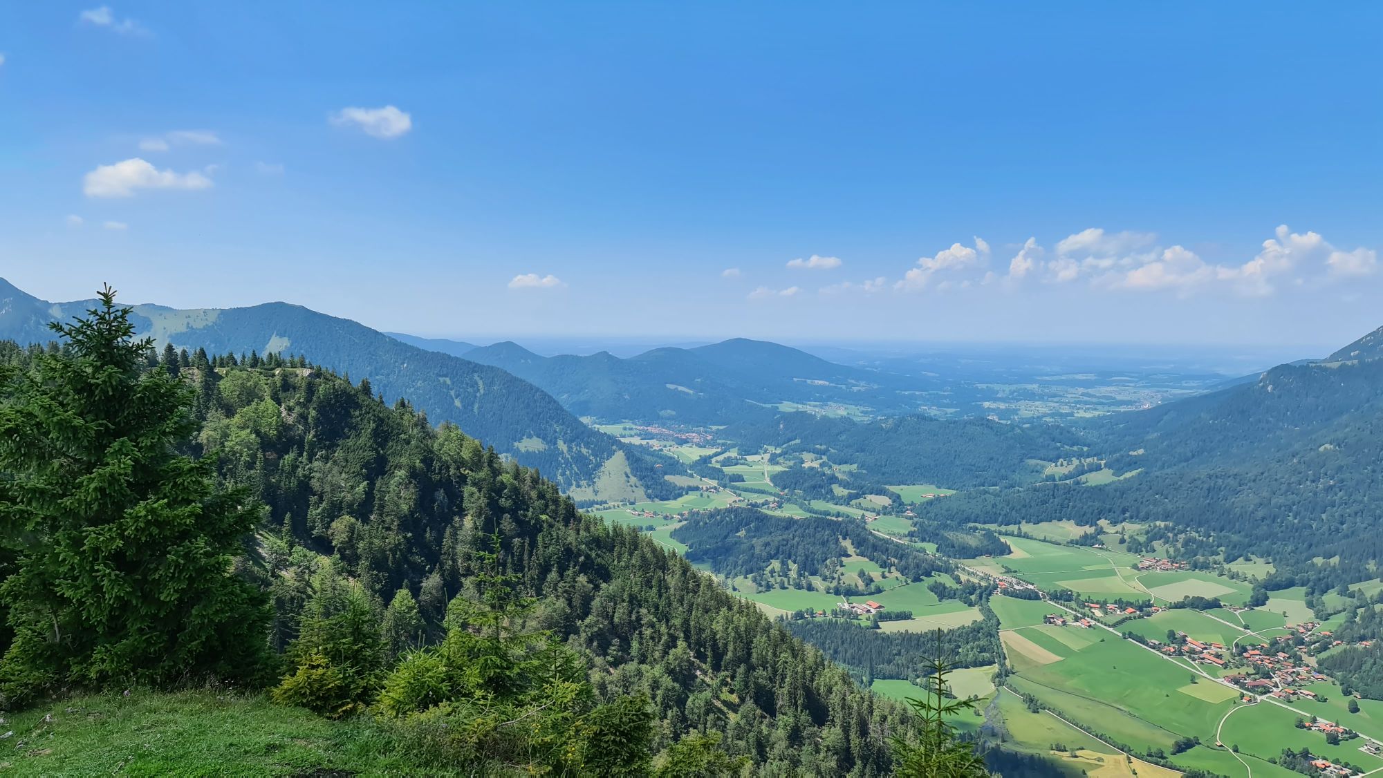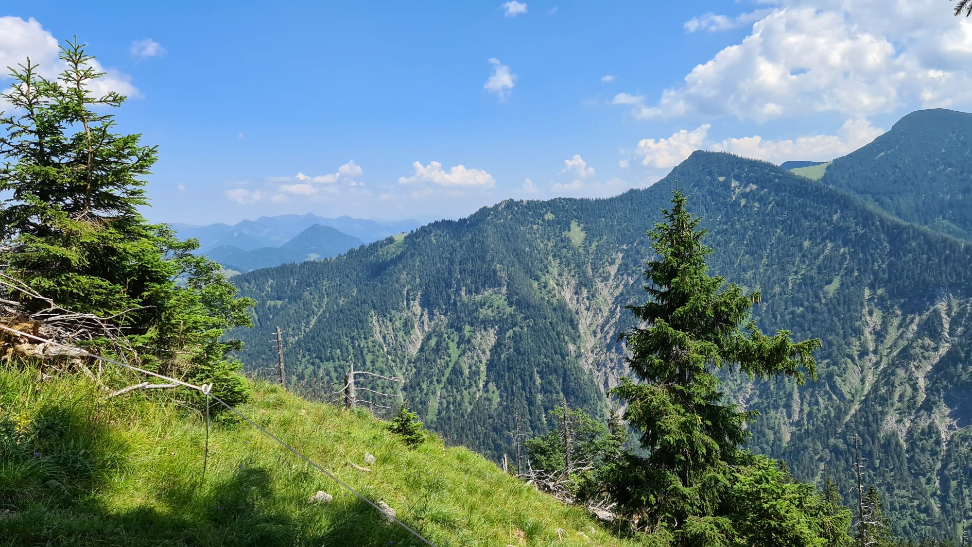 Ved ca 350 højdemeter stopper skoven for en stund, hvilket betyder bagende sol, men samridigt helt ubeskrivelige udsyn over de nærliggende bjerge.