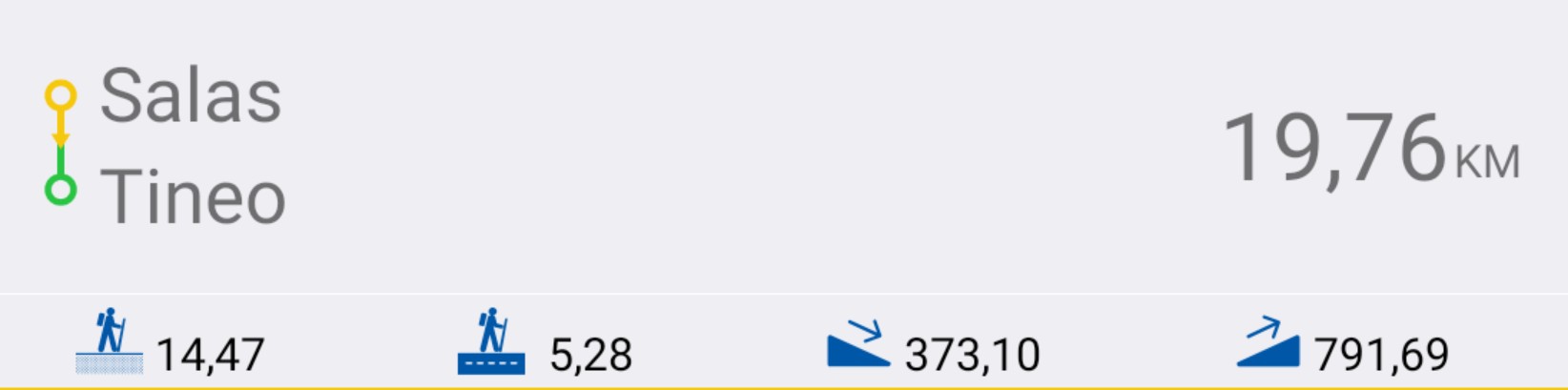 Salas til Tineo (21km min tur blev lidt længere, måske også placering af overnatningsstederne)