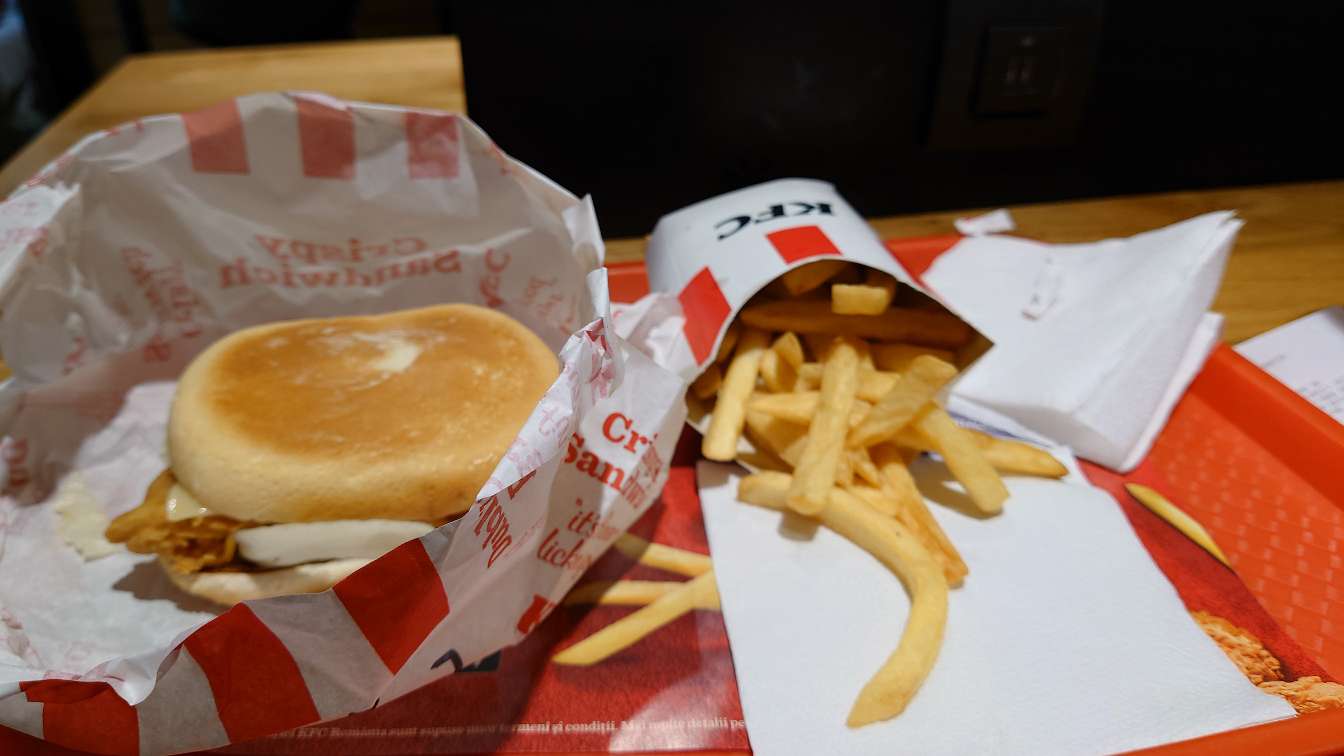 Efter at have undersøgt forholdende og have gået en tur rundt på banegården, er det tid til mad. Klokken er næsten 19.30 og jec har ikke fået frokost. Så jeg finder en KFC, og får bestilt en stor menu… Til 42 danske kr, det kan jeg leve med🙂