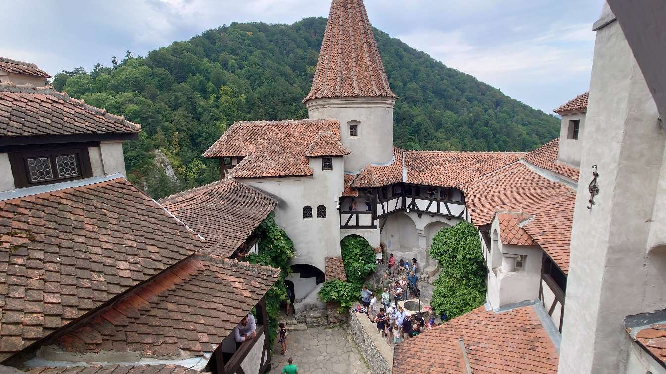 Efter en ekstrem stejl nedstigning de sidste par hundrede højdemeter, dukker et par udsigter over Bran Castle op, inden jeg ankommer ved foden af slottet… Og ganske rigtigt… jeg har brugt 1 timer mindre end estimeret. Det hjælper lidt på følelsen af, at dette er alt for hårdt