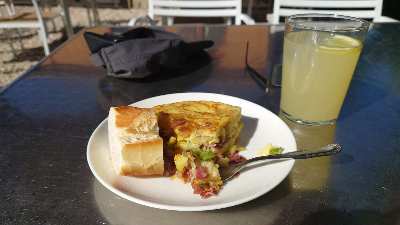 Det er efterhånden kun 7km Puente la Reina (dronningens bro), som er byen hvor jeg skal overnatte. På booking.com skriver da at jeg ikke kan tjekke ud nd før 15.00 og klokken er kun 10.50, sa jeg finder et lille serveringssted hvor jeg sætter mig i solen og nyder en ‘second breakfast’… Hvilket faktisk betyder endnu en tortilla de patatas med denne gang fyldt med lidt skinke og grøn peberfrugt… Det var en af de bedste jeg har fået til dato.. wow den var lækker og saftig.