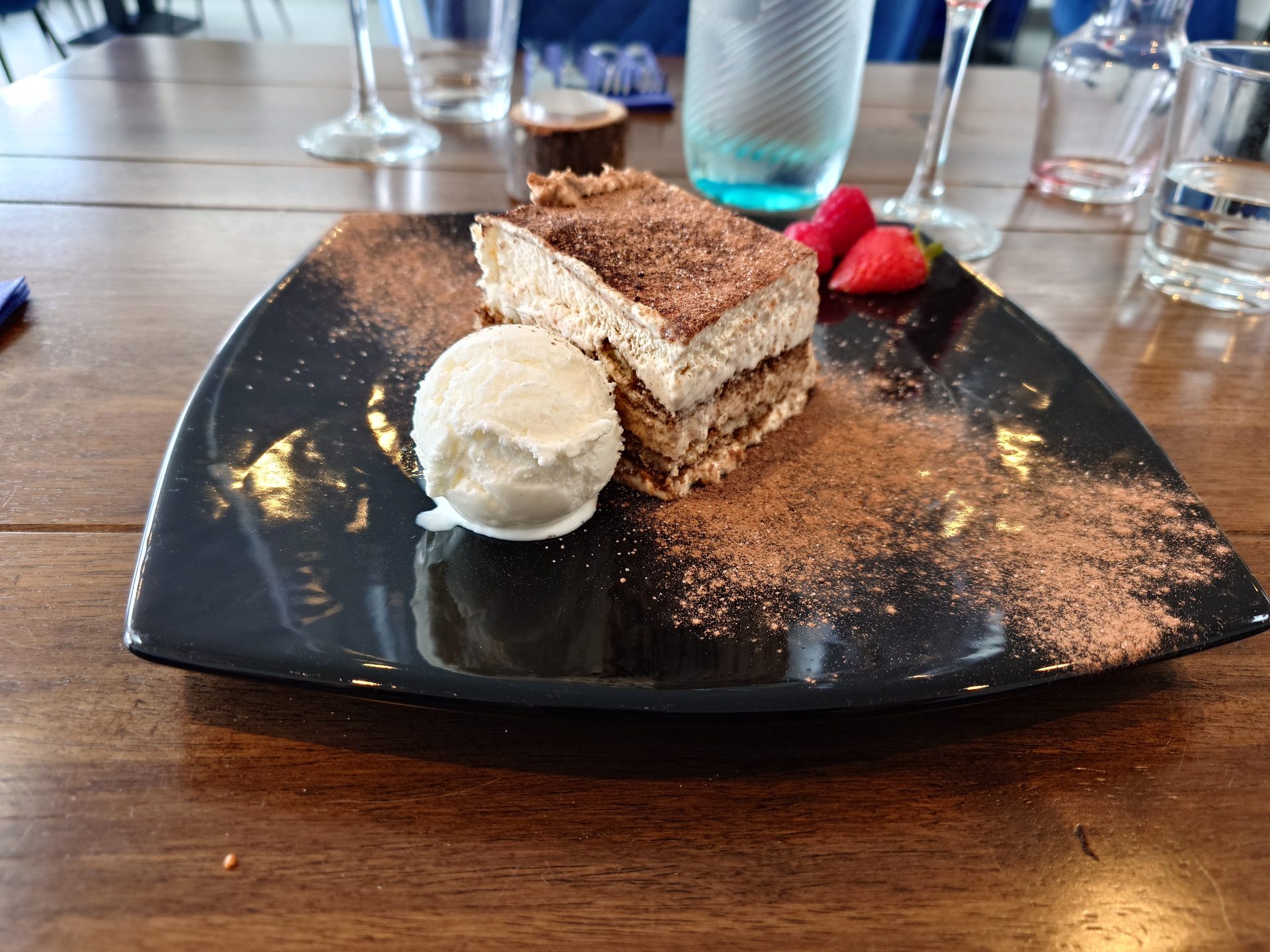 Jeg finder en italientsk restaurent tæt på og bestiller en gang Tagliatelli Ragu (hvad vi danskere lidt simpelt kalder spaghetti med kødsovs – hvor Tagliatelli er en langt bedre pasta til formålet). Jeg ender også med en dessert, da jeg har tid til overs. Her væljer jeg en skøn Tiramisu. Mon ikke jeg kommer her tilbage en af dagene jeg er i Stornoway.